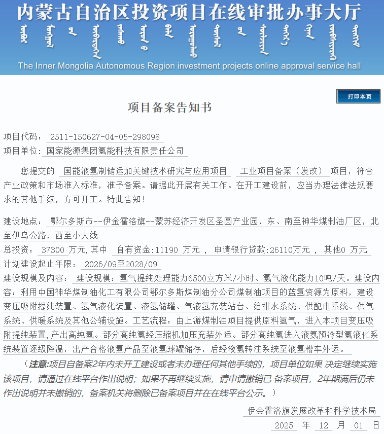 總投資3.73億元!國家能源集團一液氫制儲運加項目獲批2025-12-02 16:51瀏覽數(shù):201次