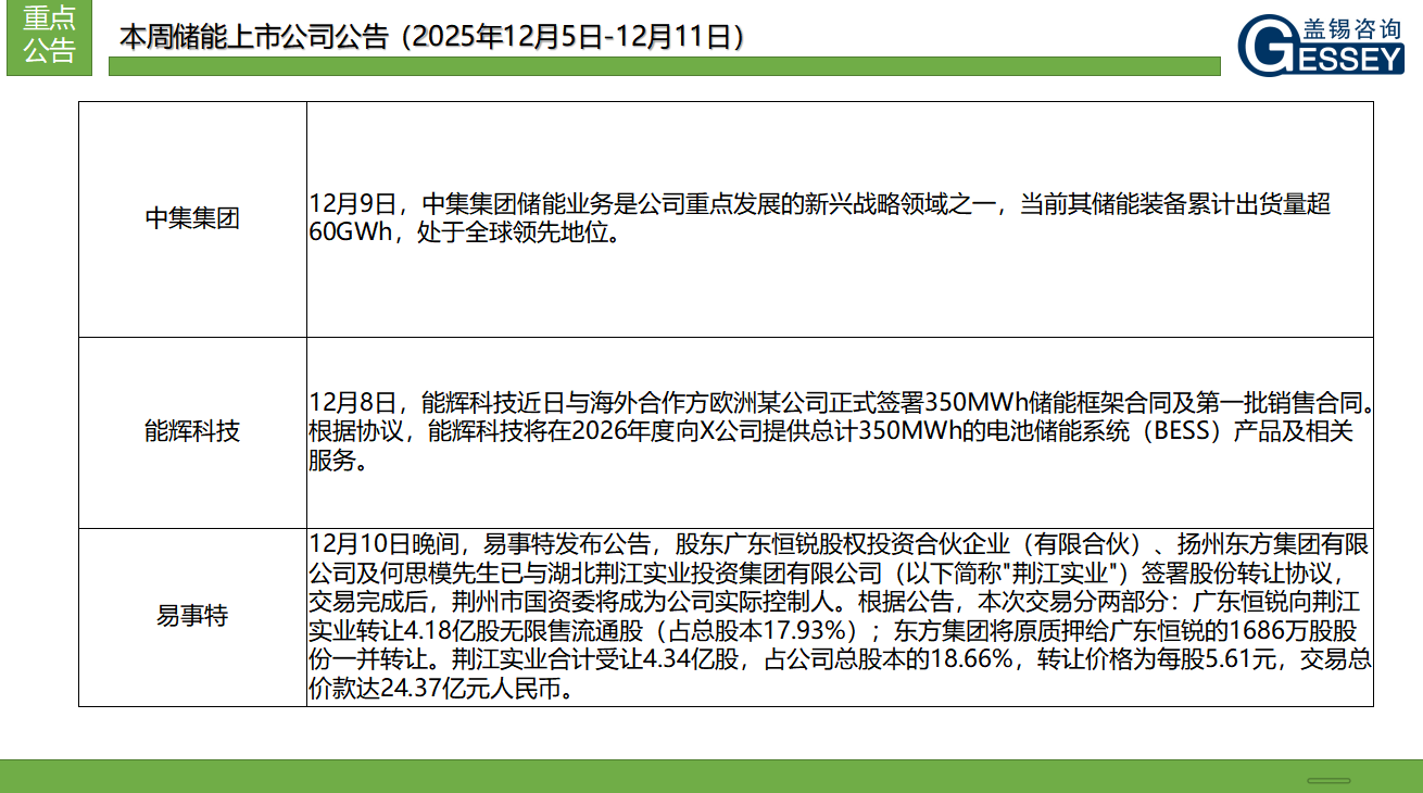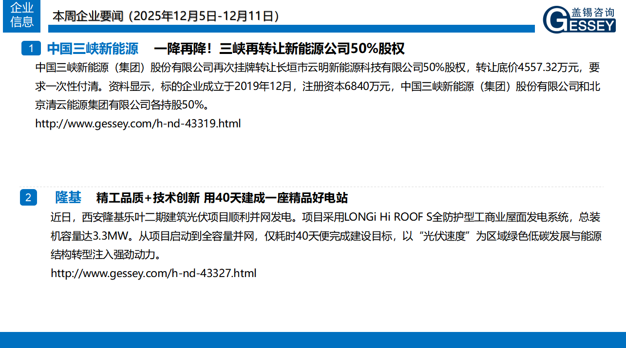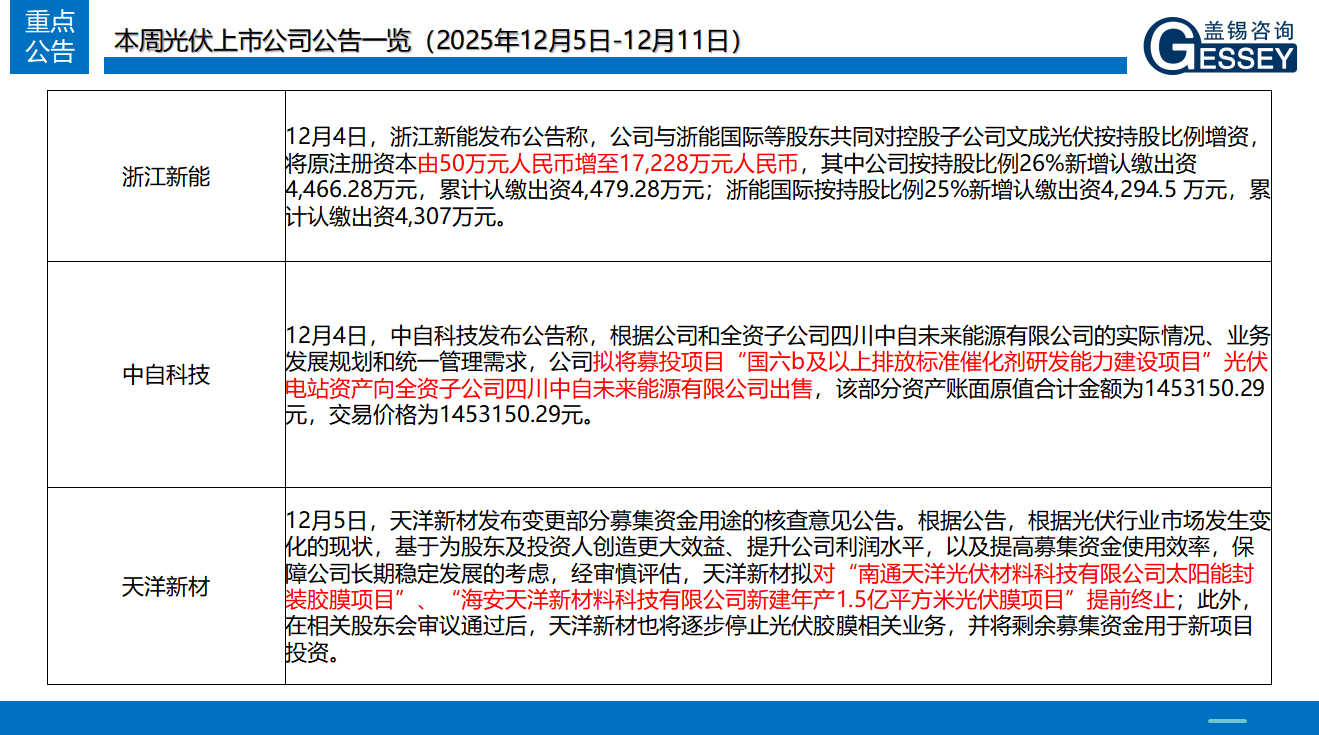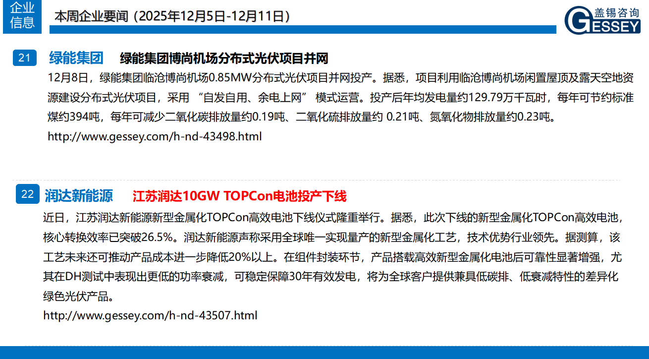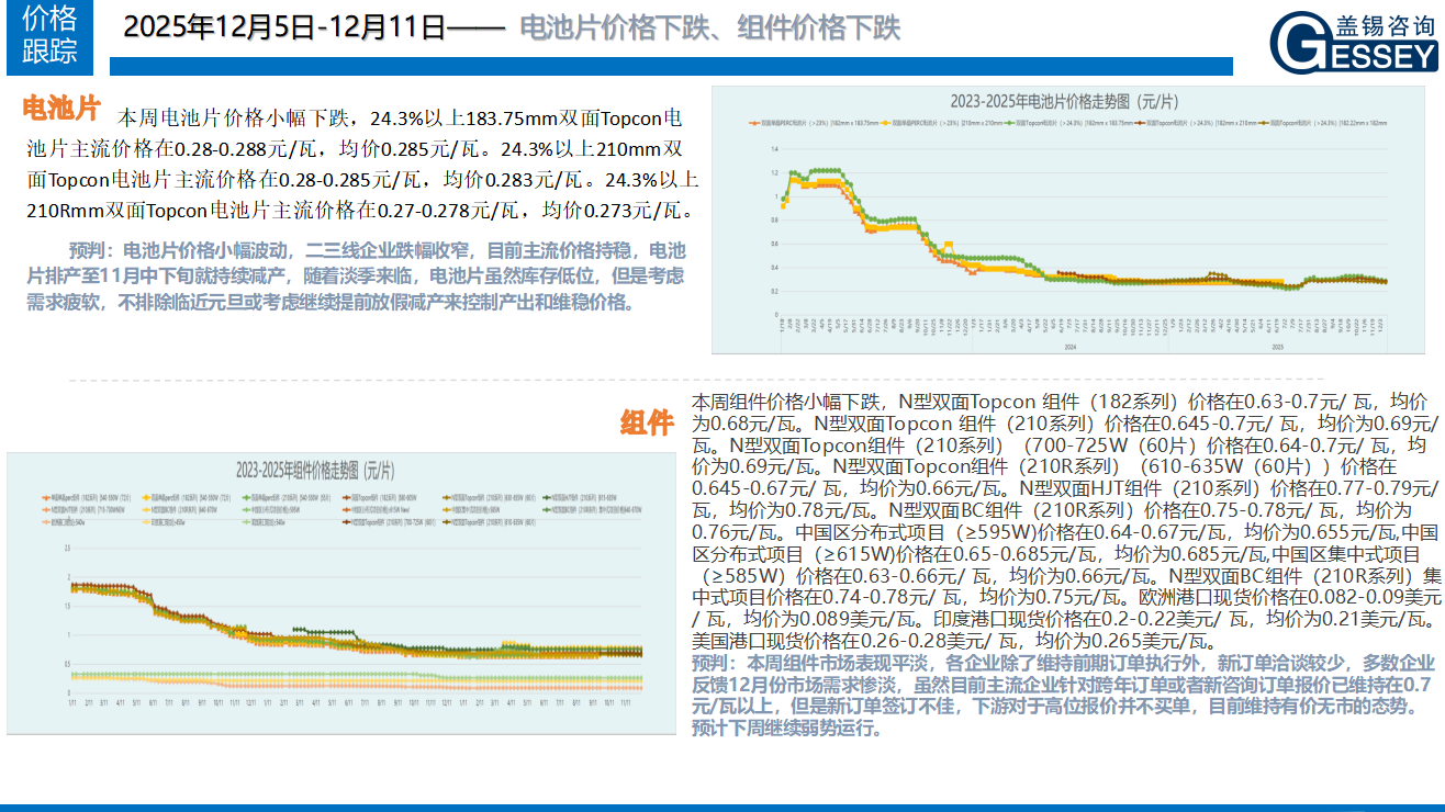 一周光伏市場(chǎng)洞察(2025年12月5日-12月11日)2025-12-12 14:38來源:gessey瀏覽數(shù):235次