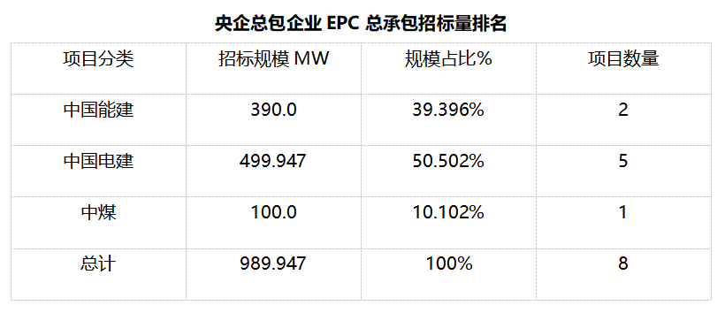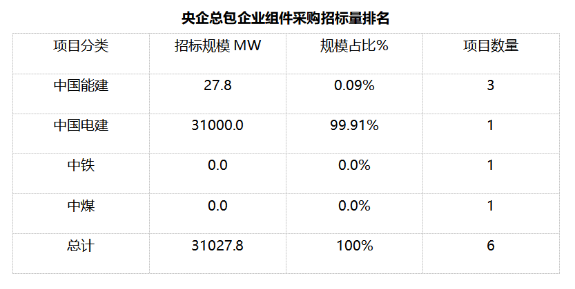 我們統(tǒng)計(jì)包含大型央企國(guó)企、地方能源集團(tuán)、地方政府機(jī)關(guān)、兩大電網(wǎng)、央企總包企業(yè)、知名光伏企業(yè)等,其中央企總包企業(yè)占總招標(biāo)規(guī)模較高,具體各企業(yè)排名如下表: