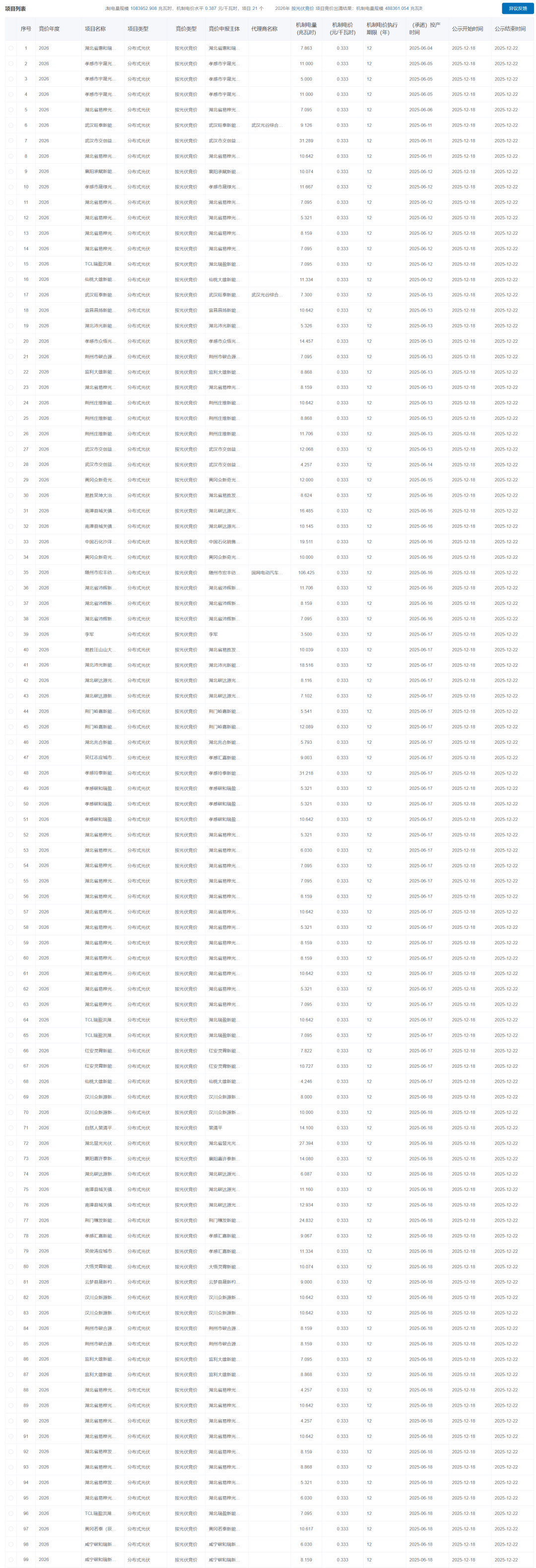 12月18日,國網(wǎng)新能源云公示湖北省2026年新能源機(jī)制電價(jià)競價(jià)結(jié)果,其中光伏0.333元/度,風(fēng)電0.387元/度。 根據(jù)公示情況來看,光伏機(jī)制電量規(guī)模為488361.054兆瓦時(shí),入圍項(xiàng)目20520個,集中式光伏僅5個;風(fēng)電機(jī)制電量規(guī)模為1083952.908兆瓦時(shí),入圍項(xiàng)目21個。 部分競價(jià)結(jié)果見下: