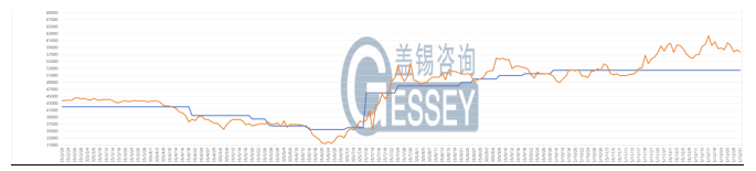 行情走勢:主力合約收盤價(jià)為57670元/噸,前結(jié)算價(jià)為58225元/噸,收盤價(jià)較前結(jié)算價(jià)跌幅為0.95%,收盤價(jià)較開盤價(jià)跌555元/噸,跌幅為0.95%,成交量為3182手,持倉量為3592手。
