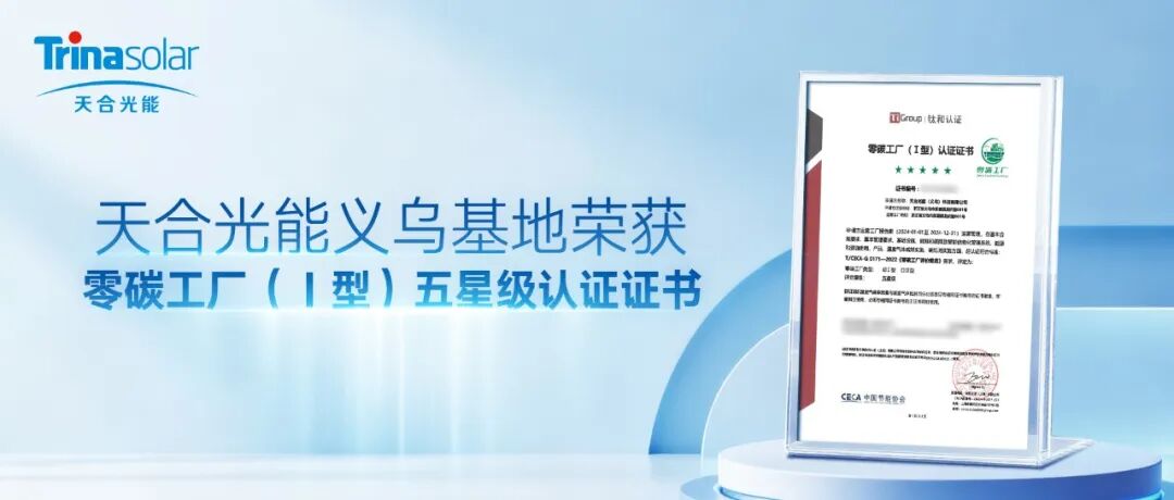 近日,天合光能(義烏)科技有限公司順利通過鈦和認(rèn)證“零碳”工廠審核,成功獲得零碳工廠(Ⅰ型)五星級認(rèn)證證書。這是天合光能連續(xù)三年獲得此項權(quán)威綠色認(rèn)證殊榮,從2023年年初成為光伏行業(yè)首家經(jīng)權(quán)威機(jī)構(gòu)認(rèn)證的“零碳”工廠,到晉升獲得零碳工廠(Ⅰ型)四星級認(rèn)證,再到此次躍升至零碳工廠(Ⅰ型)等級-五星級認(rèn)證,天合光能持續(xù)改善工廠溫室氣體管理,“零碳”工廠認(rèn)證等級不斷提升,以實(shí)際行動踐行可持續(xù)發(fā)展承諾。