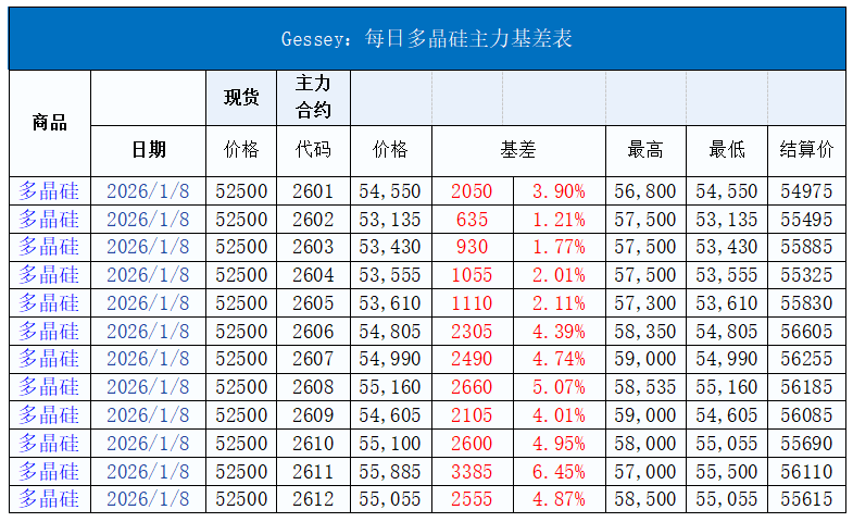 Gessey:2026年1月8日每日光伏市場行情