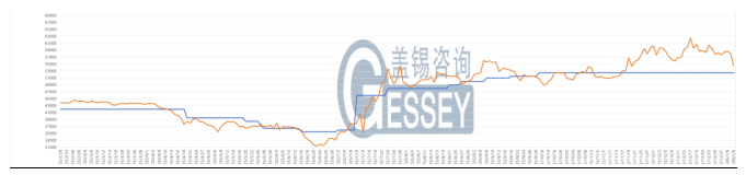 現(xiàn)貨市場價格變動: