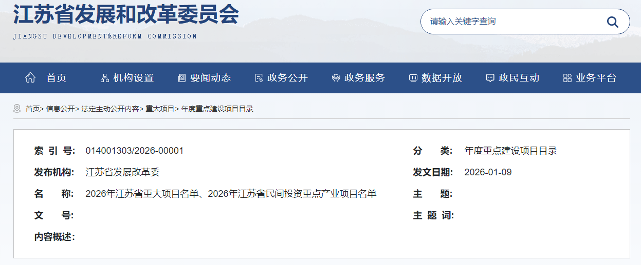 含多個(gè)光伏項(xiàng)目!江蘇2026年重大項(xiàng)目清單發(fā)布2026-01-12 14:40來(lái)源:gessey瀏覽數(shù):278次