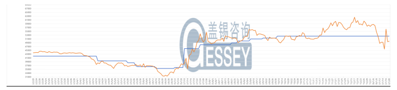 行情走勢(shì):主力合約收盤價(jià)為49815元/噸,前結(jié)算價(jià)為49570元/噸,收盤價(jià)較前結(jié)算價(jià)漲幅為0.49%,收盤價(jià)較開盤價(jià)漲245元/噸,漲幅為0.49%,成交量為629手,持倉量為4891手。