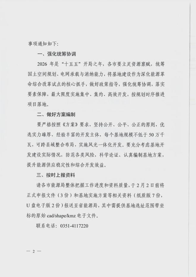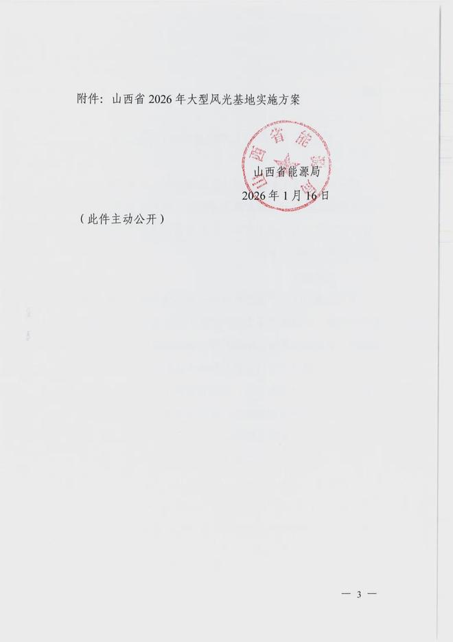山西省能源局關(guān)于印發(fā)《山西省2026年大型風(fēng)光基地實(shí)施方案》的通知2026-01-27 15:19來源:gessey瀏覽數(shù):334次
