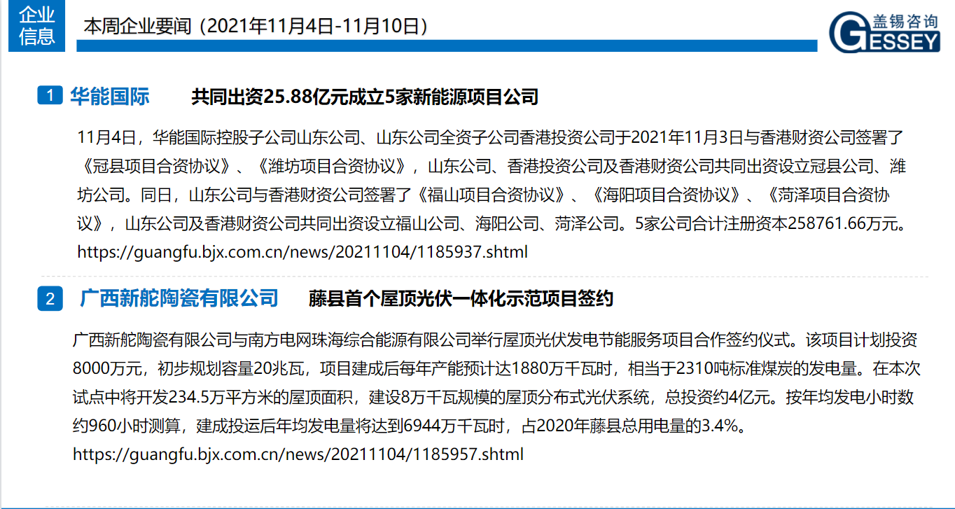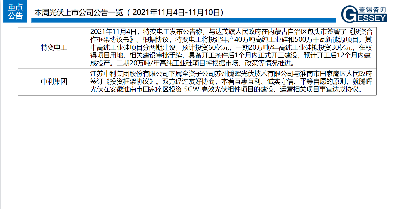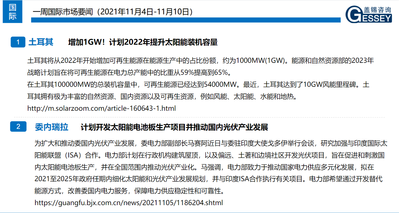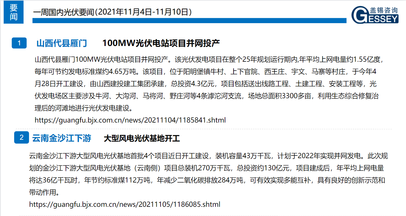 一周光伏市場洞察(2021年11月04日-11月10日)