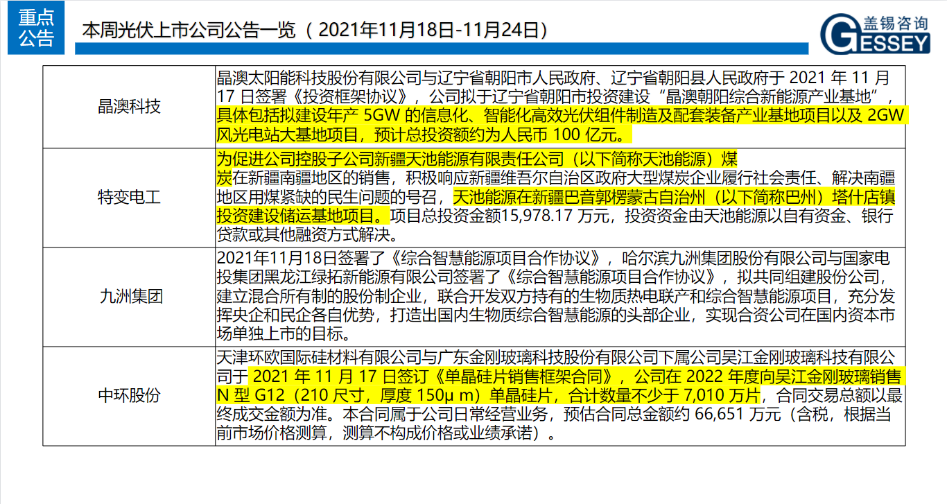 一周光伏市場(chǎng)洞察(2021年11月18日-11月24日)