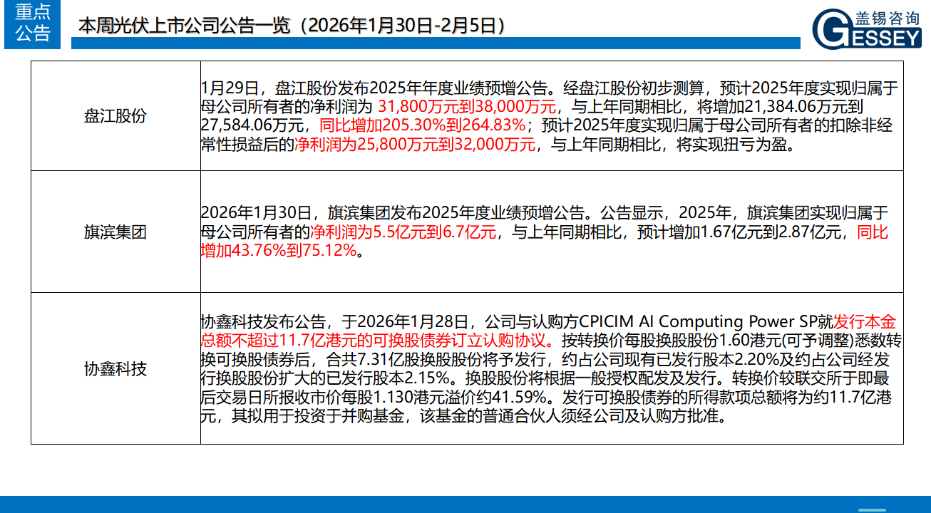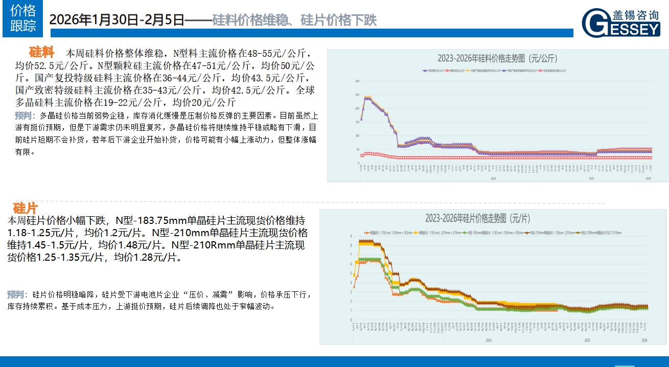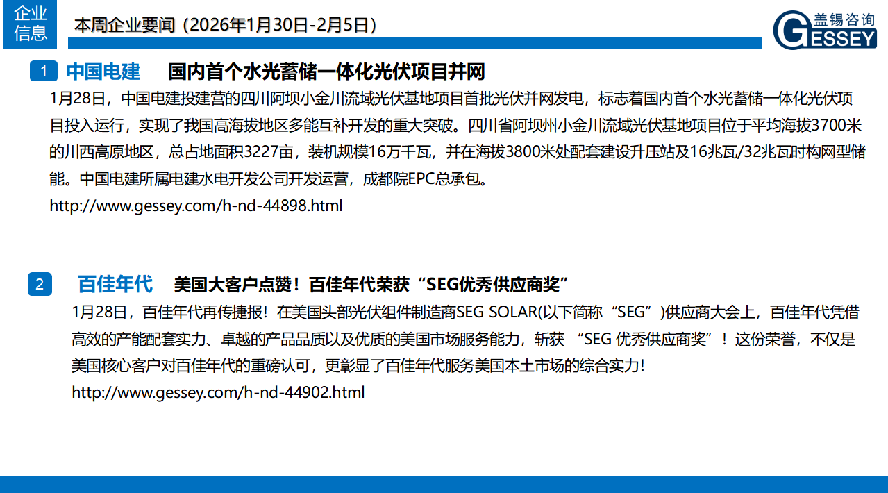 一周光伏市場洞察(2026年1月30日-2月5日)2026-02-06 15:40來源:gessey瀏覽數(shù):242次