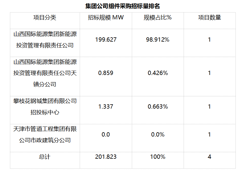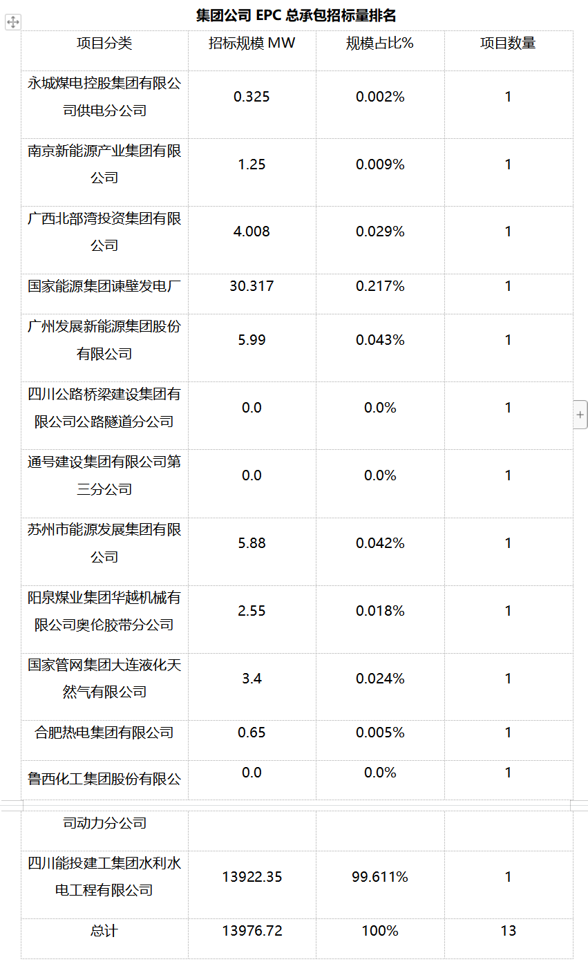 我們統(tǒng)計包含大型央企國企、地方能源集團、地方政府機關、兩大電網、央企總包企業(yè)、知名光伏企業(yè)等,其中集團公司占總招標規(guī)模較高,具體各企業(yè)排名如下表: