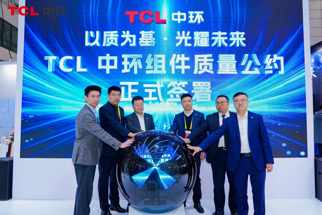 隨后,TüV萊茵大中華區(qū)太陽能與商業(yè)產(chǎn)品服務(wù)高級(jí)項(xiàng)目經(jīng)理錢龍生發(fā)表主題演講,從第三方視角解讀 TCL中環(huán)多分片技術(shù)的精益切割工藝與價(jià)值躍升邏輯,讓現(xiàn)場(chǎng)觀眾更深入了解TOPCon多分片的技術(shù)優(yōu)勢(shì)。 質(zhì)量公約簽署,堅(jiān)守發(fā)展初心 以質(zhì)為基,方能光耀未來。當(dāng)下,組件產(chǎn)品質(zhì)量成為各方關(guān)注的重要話題,TCL中環(huán)作為“中國質(zhì)量獎(jiǎng)”的獲獎(jiǎng)品牌,也是率先在行業(yè)內(nèi)發(fā)揮表率作用。 展會(huì)現(xiàn)場(chǎng),TCL中環(huán)舉行組件質(zhì)量公約簽署儀式,TCL中環(huán)電池組件事業(yè)部質(zhì)量負(fù)責(zé)人陳銳發(fā)表主題演講,倡導(dǎo)行業(yè)從 “價(jià)格競(jìng)爭(zhēng)” 回歸 “價(jià)值競(jìng)爭(zhēng)”,秉持 “極致、領(lǐng)先、協(xié)同” 理念,以質(zhì)量驅(qū)動(dòng)產(chǎn)業(yè)增長。山東省光伏協(xié)會(huì)秘書長張曉斌先生、TüV萊茵大中華區(qū)太陽能及商業(yè)產(chǎn)品服務(wù)首席技術(shù)官高祺以及TCL中環(huán)多位領(lǐng)導(dǎo)共同簽署質(zhì)量公約,向市場(chǎng)傳遞TCL中環(huán)堅(jiān)守產(chǎn)品品質(zhì)、推動(dòng)行業(yè)高質(zhì)量發(fā)展的堅(jiān)定決心。