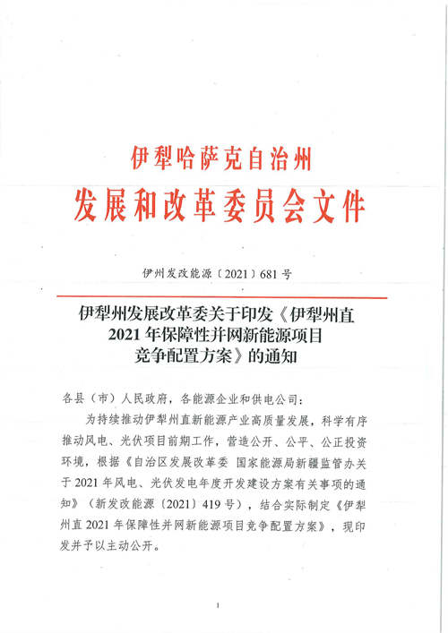 伊犁州發(fā)改委發(fā)布關(guān)于印發(fā)《伊犁州直2021年保障性并網(wǎng)新能源項(xiàng)目競爭配置實(shí)施方案》的通知,《通知》指出伊犁州直保障性并網(wǎng)新能源項(xiàng)目原則上均需通過競配方式確定項(xiàng)目開發(fā)單位,競爭配置公告要求之外不額外設(shè)置其他準(zhǔn)入條件。