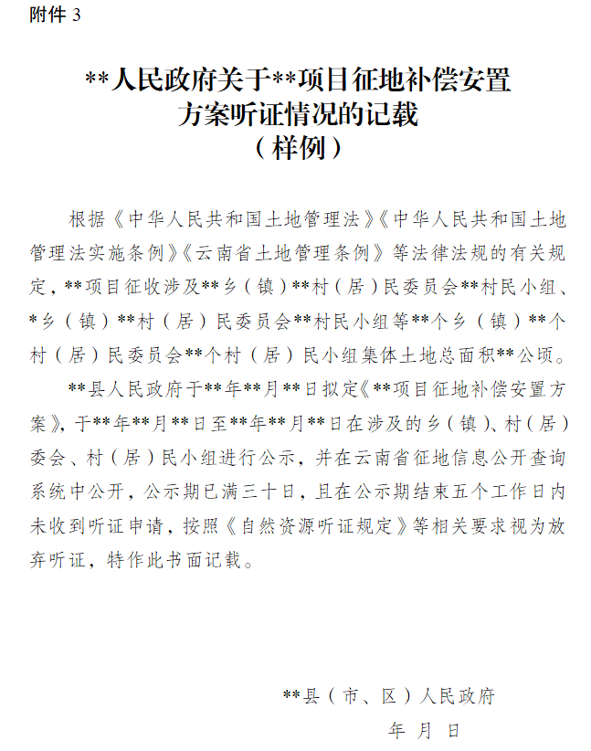 公告詳情如下: 差黑光伏發(fā)電項目征地補償安置公告 為確保差黑光伏發(fā)電項目征收土地工作的順利實施,根據(jù)社會穩(wěn)定風險評估結(jié)果,結(jié)合土地現(xiàn)狀調(diào)查結(jié)果,硯山縣人民政府組織擬定了《差黑光伏發(fā)電項目征地補償安置方案》,現(xiàn)公告如下: 一、征收土地范圍及現(xiàn)狀 本項目擬征收硯山縣稼依鎮(zhèn)店房村民委員會龍?zhí)墩迕裥〗M。土地總面積0.7360公頃,不涉及農(nóng)用地和建設(shè)用地,未利用地0.7360公頃。 二、征收目的 本次擬征收土地擬用于差黑光伏發(fā)電項目,用地符合《中華人民共和國土地管理法》第四十五條中第(二)款由政府組織實施的能源基礎(chǔ)設(shè)施建設(shè)需要用地的規(guī)定,可以征收土地的情形。 三、征收安置標準和情況 (一)按照《中華人民共和國土地管理法》規(guī)定,區(qū)片綜合地價是征收農(nóng)用地的土地補償費和安置補助費的標準,本項目土地補償標準按照《云南省自然資源廳關(guān)于公布實施2023年云南省征收農(nóng)用地區(qū)片綜合地價的通知》(云自然資〔2023〕169號)標準執(zhí)行。 (二)本項目擬征收土地涉及的其他地上附著物和青苗補償標準按照《文山州人民政府關(guān)于公布實施全州地上附著物和青苗補償標準的通知》(文政發(fā)〔2022〕56號)標準執(zhí)行。 (三)本項目擬征收土地位置、權(quán)屬、地類、面積,擬征收其他地上附著物和青苗等的權(quán)屬、種類、數(shù)量等信息以現(xiàn)狀調(diào)查結(jié)果為準。 四、安置途徑 具體安置方式及社會保障措施詳見《差黑光伏發(fā)電項目征地補償安置方案》。 五、補償?shù)怯涋k理時間及地點 本公告時間不少于30日,公告期滿后,擬征收土地的所有權(quán)人、使用權(quán)人應(yīng)當于2026年4月22日—2026年4月24日,持不動產(chǎn)權(quán)屬證明材料,到所在地鄉(xiāng)(鎮(zhèn))人民政府辦理補償?shù)怯?。逾期未登記的,以現(xiàn)狀調(diào)查結(jié)果和《差黑光伏發(fā)電項目征地補償安置方案》計算補償金額。 六、有關(guān)事項 (一)公告發(fā)布之后,涉及被征地的農(nóng)村集體經(jīng)濟組織應(yīng)組織被征地的農(nóng)村集體經(jīng)濟組織和農(nóng)民書面知悉并討論擬征收土地事宜。被征地的農(nóng)村集體經(jīng)濟組織和農(nóng)民對征地補償安置方案有異議和建議的,可通過來信或者來訪的方式反饋至硯山縣人民政府或縣級自然資源主管部門。 (二)根據(jù)《中華人民共和國土地管理法》《中華人民共和國土地管理法實施條例》以及《自然資源聽證規(guī)定》等相關(guān)規(guī)定,多數(shù)被征地的農(nóng)村集體經(jīng)濟組織成員認為《差黑光伏發(fā)電項目征地補償安置方案》不符合法律法規(guī)規(guī)定,要求聽證的,應(yīng)在征地補償安置方案公告期滿5個工作日內(nèi),向硯山縣人民政府提出書面聽證申請,由硯山縣人民政府按相關(guān)法律規(guī)定組織召開聽證會;公示期結(jié)束五個工作日內(nèi)未收到聽證申請的,視為放棄聽證,由縣級人民政府出具關(guān)于補償安置方案聽證情況的書面記載。 特此公告。 聯(lián)系人及電話:莫 永 0876-3129200 地 址:硯山縣自然資源局 附件:1.《差黑光伏發(fā)電項目征地補償安置方案》 2.《聽證申請書(樣例)》 3.《**人民政府關(guān)于**項目征地補償安置方案聽證情況的記載(樣例)》 硯山縣人民政府 2026年3月16日 附件1 差黑光伏發(fā)電項目征地補償安置方案 硯山縣人民政府依據(jù)差黑光伏發(fā)電項目擬征收土地社會穩(wěn)定風險評估結(jié)果,結(jié)合土地現(xiàn)狀調(diào)查結(jié)果,組織硯山縣自然資源局、硯山縣財政局、硯山縣人力資源和社會保障局、硯山縣農(nóng)業(yè)農(nóng)村和科學(xué)技術(shù)局、硯山縣林業(yè)和草原局、硯山縣住房和城鄉(xiāng)建設(shè)局等相關(guān)部門制定了本方案,具體內(nèi)容如下: 一、征收范圍 該項目擬征收面積為0.7360公頃,不涉及農(nóng)用地和建設(shè)用地,未利用地0.7360公頃。共涉及1個鎮(zhèn)1個村民委員會1個村民小組,具體為硯山縣稼依鎮(zhèn)店房村民委員會龍?zhí)墩迕裥〗M。主要用途為公用設(shè)施用地。 二、土地現(xiàn)狀 差黑光伏發(fā)電項目涉及硯山縣稼依鎮(zhèn)店房村民委員會龍?zhí)墩迕裥〗M。用地總規(guī)模0.7360公頃,不涉及農(nóng)用地和建設(shè)用地,未利用地0.7360公頃。該項目不涉及占用農(nóng)村村民住宅,其他地上附著物和青苗等的權(quán)屬、種類、數(shù)量等信息詳見《差黑光伏發(fā)電項目擬征收土地現(xiàn)狀調(diào)查報告》。 三、征收目的 本次擬征收土地擬用于差黑光伏發(fā)電項目,符合《中華人民共和國土地管理法》第四十五條中第(二)款由政府組織實施的能源基礎(chǔ)設(shè)施建設(shè)需要用地的,可以征收土地的情形。 四、補償方式和標準 (一)征地補償標準按照《云南省自然資源廳關(guān)于公布實施2023年云南省征收農(nóng)用地區(qū)片綜合地價的通知》(云自然資〔2023〕169號)標準執(zhí)行。 該項目征收土地共涉及硯山縣一個區(qū)片綜合地價Ⅱ區(qū)片,補償標準如下: