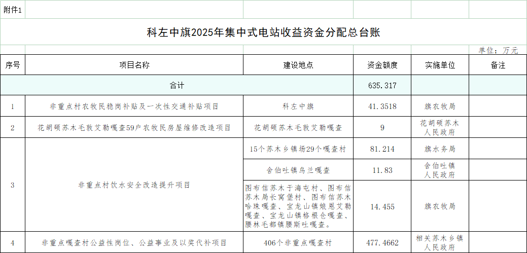 【政策重點提煉】3月17日,內(nèi)蒙古通遼科左中旗公示集中式光伏幫扶電站收益資金通知,共下達635.317萬元,資金用于脫貧戶補貼、房屋維修、飲水改造及村級公益事業(yè)等。收益精準投向民生保障與鄉(xiāng)村建設(shè),助力鞏固脫貧攻堅成果與鄉(xiāng)村振興。 詳情如下: 關(guān)于對《關(guān)于下達集中式光伏幫扶電站收益資金的通知》的公示 現(xiàn)將《關(guān)于下達集中式光伏幫扶電站收益資金的通知》(左財農(nóng)〔2026〕44號)進行公示公開,歡迎社會各界監(jiān)督。 公示時間:2026年3月17日—2026年3月27日 聯(lián)系電話:0475-3212482 監(jiān)督舉報電話:04753211123 ??12317 聯(lián)系人:馮文輝(旗財政局農(nóng)牧股股長) 電子郵箱:kzzqczjncg@163.com 2026年3月17日