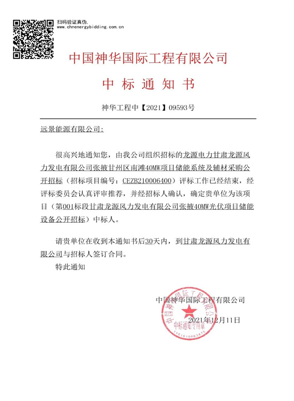 遠景能源中標(biāo)龍源甘肅光伏發(fā)電配套儲能項目2021-12-21 14:56瀏覽數(shù):4次