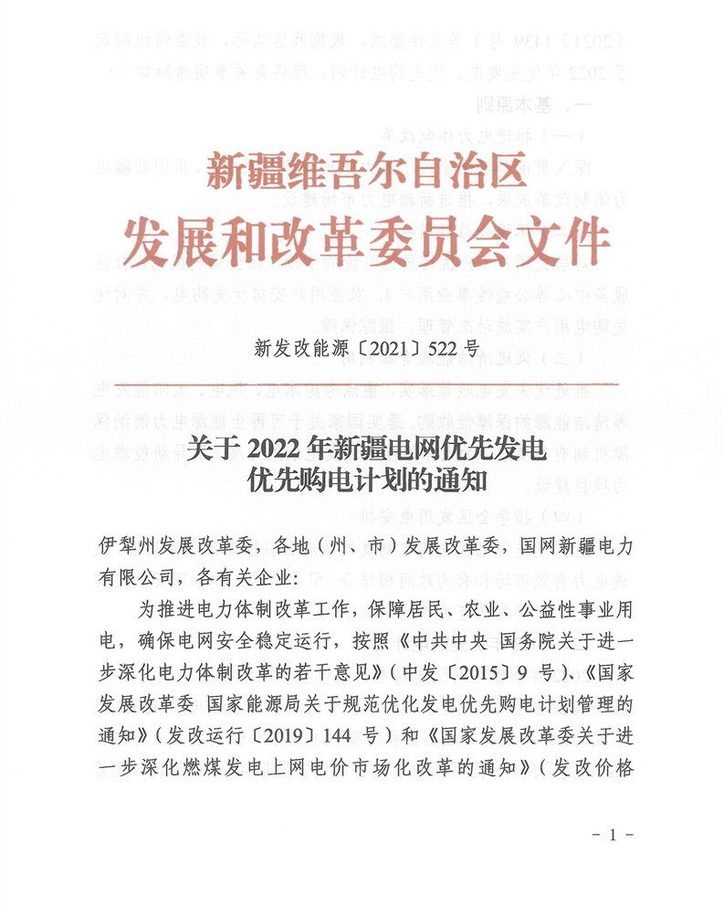新疆發(fā)改委發(fā)布《關于2022年新疆電網(wǎng)優(yōu)先發(fā)電優(yōu)先購電計劃的通知》,通知規(guī)定,推進優(yōu)先發(fā)電政策落實,重點考慮水電、風電、太陽能發(fā)電等清潔能源的保障性收購。落實國家關于可再生能源電力消納保障機制有關要求,加大保障性風光發(fā)電消納力度,引導新能源電力項目建設。 太陽能發(fā)電機組安排優(yōu)先發(fā)電計劃56.71億千瓦時。其中:扶貧光伏、光熱2.26億千瓦時,實行全額保障收購;保障性光伏29.63億千瓦時,一類、二類資源區(qū)內(nèi)優(yōu)先小時數(shù)分別為1500、1350小時;非保障性光伏24.82億千瓦時,優(yōu)先小時數(shù)280小時,列入第一批發(fā)電側(cè)光伏儲能聯(lián)合運行試點的項目再增加100小時。