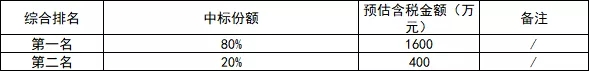集中招標合同有效期:自合同生效至2022年12月31日止。 1.1.4 質(zhì)量要求:主要技術(shù)標準/參數(shù)應(yīng)達到國家、行業(yè)現(xiàn)行相關(guān)質(zhì)量規(guī)范標準及技術(shù)規(guī)范書要求。 1.1.5 交貨期:賣方應(yīng)于買方采購訂單下達之日起[14]日內(nèi)分批次將貨物交付于買方。 1.1.6交貨地點:買方或其下屬分公司指定庫房/或指定地點。 1.1.7保修期:賣方所提供的貨物的保修期為[ 36 ]個月,從買方對貨物完成交貨確認之日起開始計算。 1.2標包/份額劃分:本項目劃分2個份額,每個中標人對應(yīng)的中標份額及分配原則如下: