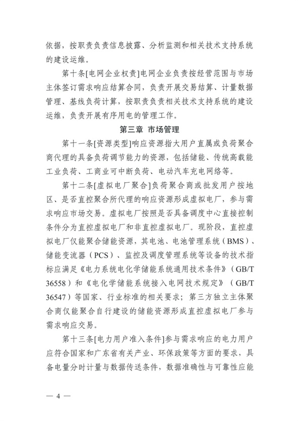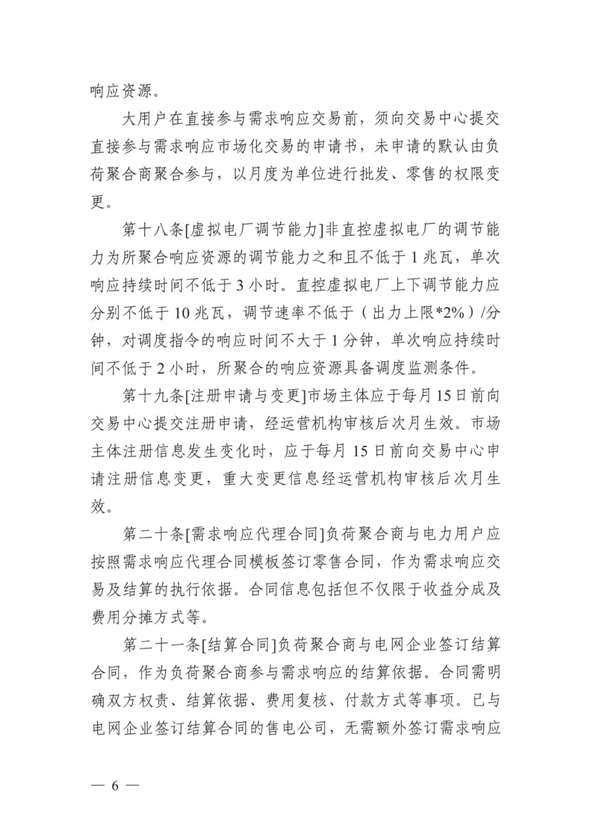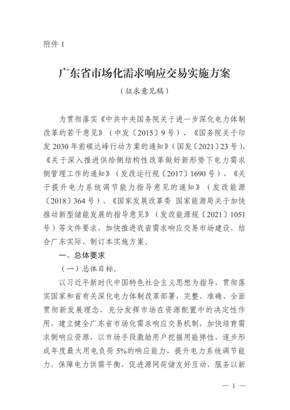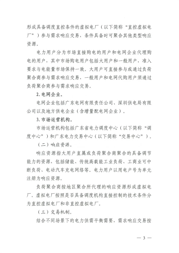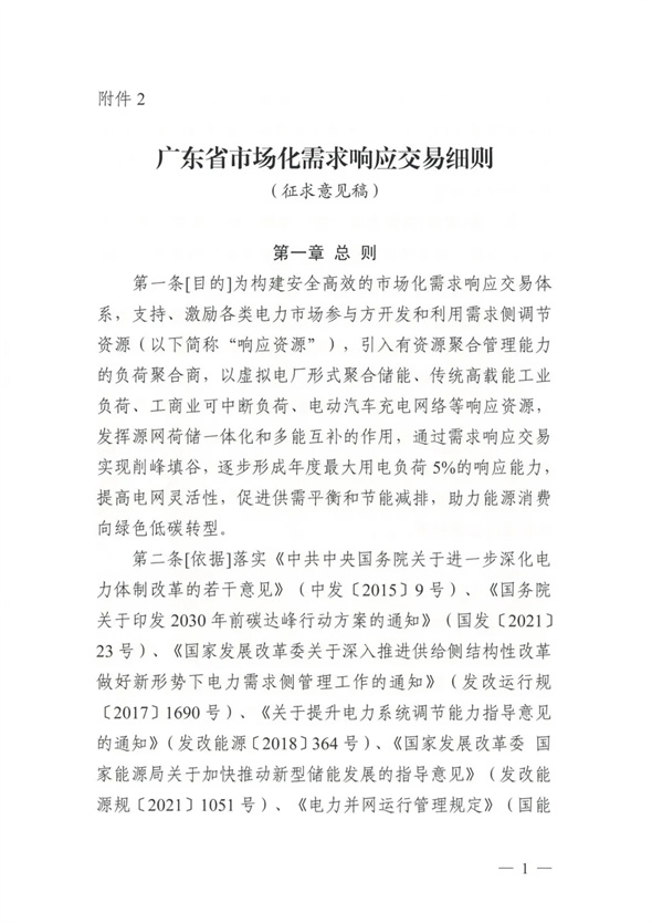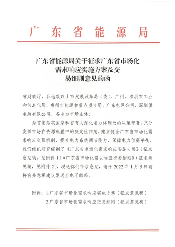 近日,廣東省能源局發(fā)布《關(guān)于征求廣東省市場(chǎng)化需求響應(yīng)實(shí)施方案及交易細(xì)則意見(jiàn)的函》(下稱《實(shí)施方案》),建立健全廣東省市場(chǎng)化需求響應(yīng)交易機(jī)制,逐步形成年度最大用電負(fù)荷5%的響應(yīng)能力,保障電力供需平衡。 《實(shí)施方案》要求,參加需求響應(yīng)交易的市場(chǎng)主體應(yīng)符合國(guó)家和廣東省有關(guān)準(zhǔn)入要求,滿足參與需求響應(yīng)交易的技術(shù)條件,遵守市場(chǎng)運(yùn)營(yíng)規(guī)則。 負(fù)荷聚合商包括售電公司和第三方獨(dú)立主體聚合商?,F(xiàn)階段,第三方獨(dú)立主體聚合商僅能聚合自行建設(shè)并滿足國(guó)家規(guī)定的安全、消防、節(jié)能環(huán)保等條件的儲(chǔ)能資源,形成具備調(diào)度直控條件的虛擬電廠參與需求影響交易,條件具備時(shí)可聚合其他類型響應(yīng)資源。 響應(yīng)資源指大用戶直屬或負(fù)荷聚合商聚合的具備調(diào)節(jié)能力的資源,包括儲(chǔ)能、傳統(tǒng)高載能工業(yè)負(fù)荷、エ商業(yè)可中斷負(fù)荷、電動(dòng)汽車充電網(wǎng)絡(luò)等。 《實(shí)施方案》鼓勵(lì),各地市政府加大市場(chǎng)化需求響應(yīng)宣傳推廣力度,研究出臺(tái)資金支持政策引導(dǎo)儲(chǔ)能、負(fù)控裝置及配套技術(shù)支持系統(tǒng)的建設(shè)。 此外,《實(shí)施方案》還在調(diào)用原則中明確,對(duì)于儲(chǔ)能資源聚合成的直控虛擬電廠,原則上按照不低于“兩充兩放”安排每日調(diào)度計(jì)劃、每日頂峰時(shí)長(zhǎng)不低于4小時(shí)。 原文如下: