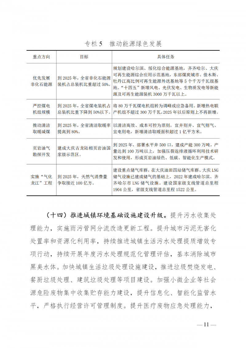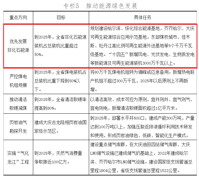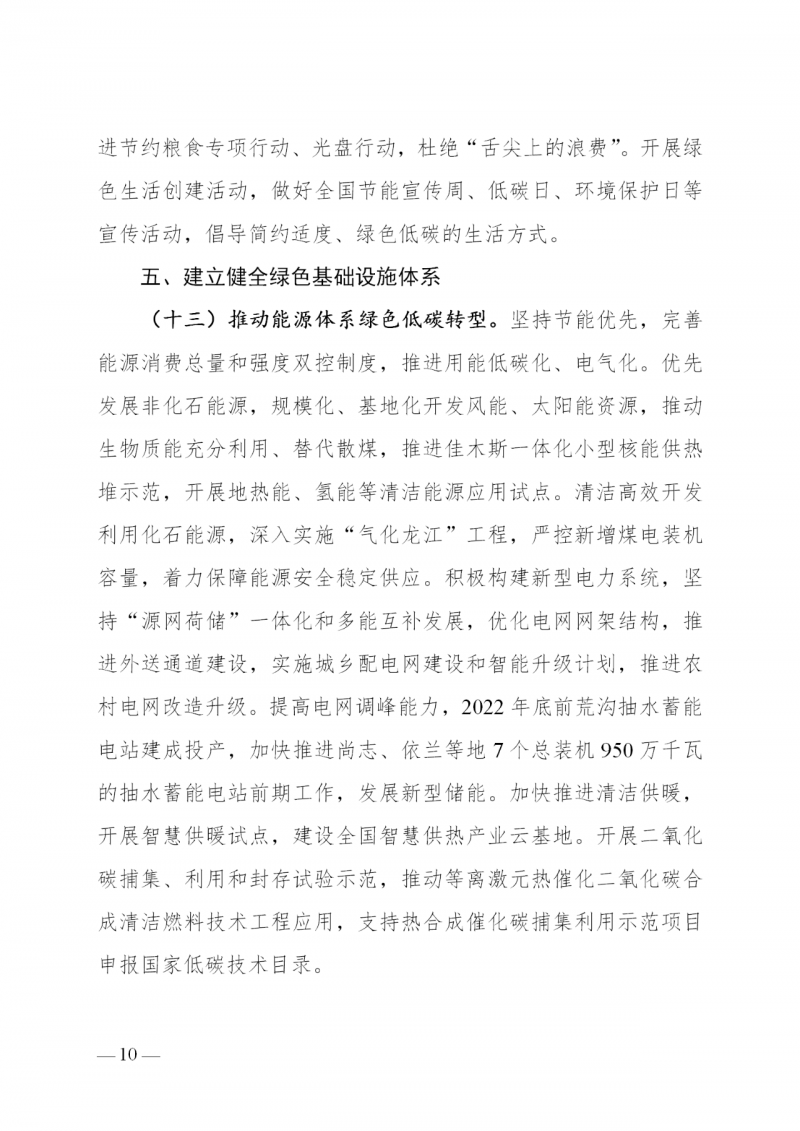 另外,推動能源體系綠色低碳轉(zhuǎn)型。優(yōu)先發(fā)展非化石能源,規(guī)模化、基地化開發(fā)風能、太陽能資源,推動生物質(zhì)能充分利用、替代散煤,推進佳木斯一體化小型核能供熱堆示范,開展地熱能、氫能等清潔能源應用試點。 清潔高效開發(fā)利用化石能源,深入實施“氣化龍江”工程,嚴控新增煤電裝機容量,著力保障能源安全穩(wěn)定供應。積極構(gòu)建新型電力系統(tǒng),堅持“源網(wǎng)荷儲”一體化和多能互補發(fā)展,優(yōu)化電網(wǎng)網(wǎng)架結(jié)構(gòu),推進外送通道建設,實施城鄉(xiāng)配電網(wǎng)建設和智能升級計劃,推進農(nóng)村電網(wǎng)改造升級。提高電網(wǎng)調(diào)峰能力,2022年底前荒溝抽水蓄能電站建成投產(chǎn),加快推進尚志、依蘭等地7個總裝機950萬千瓦的抽水蓄能電站前期工作,發(fā)展新型儲能。 政策原文如下: