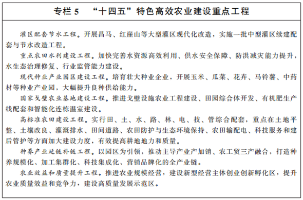 (五)大力發(fā)展特色高效農(nóng)業(yè)。 打造具有國際影響力的種業(yè)基地。全面實施種業(yè)振興行動,順應(yīng)現(xiàn)代農(nóng)業(yè)用種需求,切實提高河西種業(yè)基地建設(shè)水平,增強良種穩(wěn)定供應(yīng)能力,確保國家糧食安全。加強農(nóng)業(yè)種質(zhì)資源保護開發(fā)利用,爭取實施一批農(nóng)業(yè)生物育種重大科技項目。加快夯實發(fā)展基礎(chǔ),擴大制種面積,建設(shè)國家優(yōu)質(zhì)種子基地,建立種質(zhì)資源庫(圃),提升育制種水平。積極培育和引進種業(yè)龍頭企業(yè),加快建立以種業(yè)企業(yè)為主體、產(chǎn)學(xué)研用緊密結(jié)合的商業(yè)化育種體系。鼓勵企業(yè)兼并重組,引導(dǎo)優(yōu)勢企業(yè)優(yōu)化整合,打造具有國際影響力的種業(yè)基地。顯著提升玉米、瓜菜、花卉、油菜、馬鈴薯等制種能力和水平。創(chuàng)建一批國家級種業(yè)產(chǎn)業(yè)園,推動形成良種研發(fā)繁育、檢驗檢測、種植加工、流通服務(wù)于一體的現(xiàn)代種業(yè)全產(chǎn)業(yè)鏈。 加快發(fā)展現(xiàn)代絲路寒旱農(nóng)業(yè)。以戈壁高效農(nóng)業(yè)發(fā)展為導(dǎo)向,堅持科技賦能,打造絲路寒旱農(nóng)業(yè)發(fā)展示范基地、超大規(guī)模蔬菜、優(yōu)質(zhì)牧草和花卉生產(chǎn)基地。加快推進高原蔬菜區(qū)域化布局、標(biāo)準(zhǔn)化生產(chǎn)、集約化經(jīng)營、品牌化建設(shè),對接“一帶一路”和粵港澳大灣區(qū)“菜籃子”供應(yīng)。堅持全產(chǎn)業(yè)鏈開發(fā),打造全國重要的優(yōu)質(zhì)綠色農(nóng)產(chǎn)品生產(chǎn)供應(yīng)基地,加強品牌建設(shè),提高“甘味”品牌影響力。 建設(shè)高效節(jié)水示范區(qū)。加快河西灌區(qū)續(xù)建配套和現(xiàn)代化改造,實施水肥一體化示范工程等重大節(jié)水項目。以高效節(jié)水示范區(qū)建設(shè)為載體,開展農(nóng)業(yè)用水精細(xì)化管理,大力推廣現(xiàn)代節(jié)水技術(shù)。以農(nóng)業(yè)科技園區(qū)為基礎(chǔ),探索實施用水管理體制改革試點示范。打造高效節(jié)水蔬菜示范區(qū)、糧田示范區(qū)、地表水高效利用示范區(qū)、農(nóng)藝節(jié)水示范區(qū)、小型水利節(jié)水示范區(qū)。 壯大農(nóng)產(chǎn)品加工業(yè)。發(fā)揮農(nóng)字號骨干企業(yè)龍頭作用,不斷培育壯大綠色食品精深加工主體,建設(shè)綠色食品加工產(chǎn)業(yè)園區(qū),大力發(fā)展特色畜禽產(chǎn)品加工、特色果蔬加工、特色釀造加工、特色主食加工,加快發(fā)展葡萄酒地理標(biāo)志保護產(chǎn)品,打造百億級食品加工產(chǎn)業(yè)集群。依托綠色生產(chǎn)及智能制造示范應(yīng)用項目打造百億級奶產(chǎn)業(yè)集群。培育“專精特新”綠色食品中小企業(yè),依法依規(guī)支持農(nóng)產(chǎn)品加工企業(yè)技術(shù)改造升級。