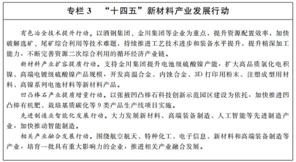 (三)加快發(fā)展先進制造業(yè)。 打造有色金屬新材料產(chǎn)業(yè)鏈。以金昌、嘉峪關(guān)為龍頭,協(xié)同建設(shè)有色金屬新材料產(chǎn)業(yè)基地。大力推進延鏈補鏈,重點建設(shè)電池、粉末冶金、電鍍、電工材料、鎳合金加工材料產(chǎn)業(yè)鏈。加快發(fā)展高溫合金、耐蝕合金、特種不銹鋼、高鎳系列電池材料、鎳鈷合金、電鍍材料等高附加值產(chǎn)品。加快鍛造產(chǎn)業(yè)鏈供應(yīng)鏈長板,全面助推冶金—循環(huán)經(jīng)濟—裝備制造、光伏發(fā)電—電解鋁—鋁制品產(chǎn)業(yè)鏈發(fā)展。 培育化工新材料產(chǎn)業(yè)集群。依托金昌、玉門、高臺等化工園區(qū),培育發(fā)展高端化工產(chǎn)品、精細(xì)化工新材料、化工中間體等產(chǎn)業(yè)集群。加快張掖凹凸棒石產(chǎn)業(yè)園基礎(chǔ)設(shè)施建設(shè),爭創(chuàng)國家級凹凸棒石重點實驗室。依法依規(guī)積極承接中東部地區(qū)產(chǎn)業(yè)轉(zhuǎn)移,重點發(fā)展基礎(chǔ)化工產(chǎn)品、精細(xì)化工新材料、高端化學(xué)品等精細(xì)化工產(chǎn)業(yè),培育優(yōu)勢特色產(chǎn)業(yè)集群。積極推進有色、化工、建材等傳統(tǒng)制造業(yè)綠色改造,打造綠色供應(yīng)鏈。 加強先進制造業(yè)基地建設(shè)。依托金昌經(jīng)濟技術(shù)開發(fā)區(qū)、張掖經(jīng)濟技術(shù)開發(fā)區(qū)、玉門經(jīng)濟開發(fā)區(qū)、嘉峪關(guān)工業(yè)園區(qū)等園區(qū),建設(shè)以石化通用裝備、新能源裝備及農(nóng)機裝備、有色金屬制造等為重點的先進制造業(yè)基地。依托鎳鈷新材料創(chuàng)新中心等省級制造業(yè)創(chuàng)新中心,推動重離子加速器癌癥治療裝備制造、高端醫(yī)用材料制造、粉末金屬材料制造發(fā)展。以機器人及其關(guān)鍵零部件、高速高精加工裝備和智能成套裝備為重點,大力發(fā)展智能制造業(yè)。