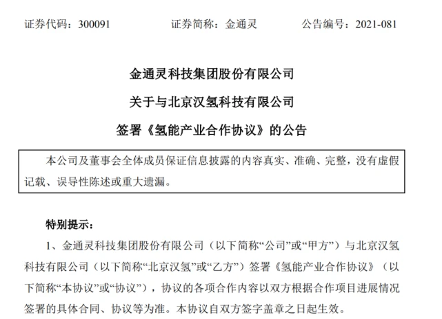 【氫時代?資本】總投資2.3億元!金通靈攜漢氫科技“掘金”氫能金通靈科技集團(tuán)股份有限公司(證券簡稱:金通靈 代碼:300091)發(fā)布與北京漢氫科技有限公司(下稱“漢氫科技”)的合作公告,雙方簽署《氫能產(chǎn)業(yè)合作協(xié)議》,協(xié)議總投資額暫估為2.3億元人民幣。 雙方合作的氫能項(xiàng)目主要內(nèi)容包括:落實(shí)在甘肅、寧夏、貴州、內(nèi)蒙、新疆等地氫能源綜合利用項(xiàng)目的制氫、氫氣儲運(yùn)、加氫、氫能利用、合成氨、甲醇等整體解決方案,實(shí)現(xiàn)項(xiàng)目投資建設(shè)總承包;在寧夏成立首個氫能源綜合利用項(xiàng)目公司,注冊資金約6000萬元人民幣,由金通靈控股,股權(quán)占比80%,項(xiàng)目總投資暫估為2.3億元人民幣。 金通靈將參股漢氫科技,占有后者的股權(quán)比例不超過35%。參股后的合資公司按照上市公司規(guī)范運(yùn)營、審計,由金通靈負(fù)責(zé)產(chǎn)業(yè)鏈的投資、運(yùn)營管理、并分包部分核心設(shè)備制造。 漢氫科技負(fù)責(zé)該合資公司的氫能全產(chǎn)業(yè)鏈核心設(shè)備研發(fā)、生產(chǎn)制造及系統(tǒng)集成總承包工作,并在三年內(nèi)完成1000Nm3/h堿性水電解槽、 PEM純水電解槽、儲氫設(shè)備、 70MPa加氫站設(shè)備研發(fā),并完成2~3個氫能源綜合利用項(xiàng)目建設(shè)。 金通靈與漢氫科技的合作是“志同道合”, 雙方都致力于推動氫能產(chǎn)業(yè)發(fā)展,并具有豐富的氫能技術(shù)和產(chǎn)品經(jīng)驗(yàn)。 金通靈專注于大型工業(yè)鼓風(fēng)機(jī)、壓縮機(jī)、蒸汽輪機(jī)等流體機(jī)械的研發(fā)制造,在壓縮機(jī)、壓力容器、鍋爐、汽輪機(jī)等高端制造領(lǐng)域?qū)嵙π酆?。公司與瑞士合作的氫燃料電池用空氣壓縮機(jī)項(xiàng)目正在進(jìn)行中,配套廠房建設(shè)、設(shè)備采購有序推進(jìn)中,預(yù)計2022年上半年投產(chǎn)。 漢氫科技是國內(nèi)制氫行業(yè)中少數(shù)幾家具備大型制氫設(shè)備設(shè)計、生產(chǎn)與系統(tǒng)集成供貨能力的企業(yè)。擁有加氫站20MPa壓縮至70MPa的升壓設(shè)備、壓縮機(jī)、加氫機(jī)等核心技術(shù)及產(chǎn)品,以及氫氣高密度儲運(yùn)(增容2.5倍)的獨(dú)家解決方案,可使氫氣儲運(yùn)效率在傳統(tǒng)20MPa基礎(chǔ)上提升3倍以上。其客戶遍布海內(nèi)外,與國電、華電、華能、大唐、中電投、東方電氣等知名企業(yè)進(jìn)行供應(yīng)合作。 1月4日,寧夏工業(yè)和信息化廳批準(zhǔn)成立“寧夏氨氫產(chǎn)業(yè)聯(lián)盟”,漢氫科技為該聯(lián)盟成員之一。 本次金通靈與漢氫科技達(dá)成的全方位合作,將有助于其鞏固“以流體機(jī)械領(lǐng)域?yàn)楹诵?,圍繞新能源、可再生能源、分布式能源、智慧能源的全球高端裝備制造商、系統(tǒng)集成建設(shè)和運(yùn)營服務(wù)商”的戰(zhàn)略定位。