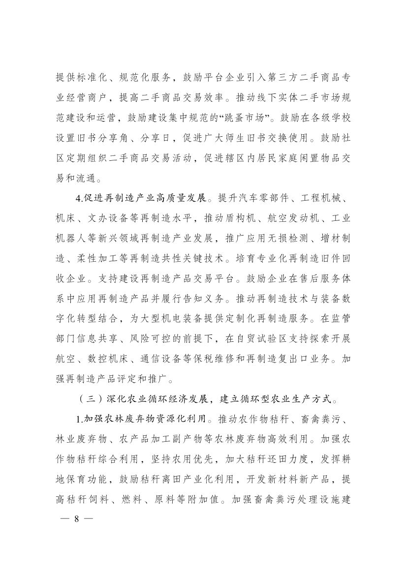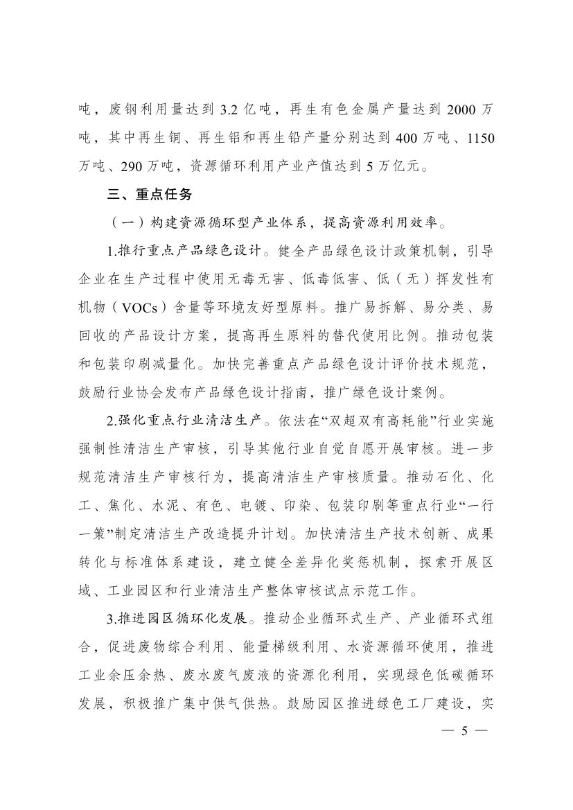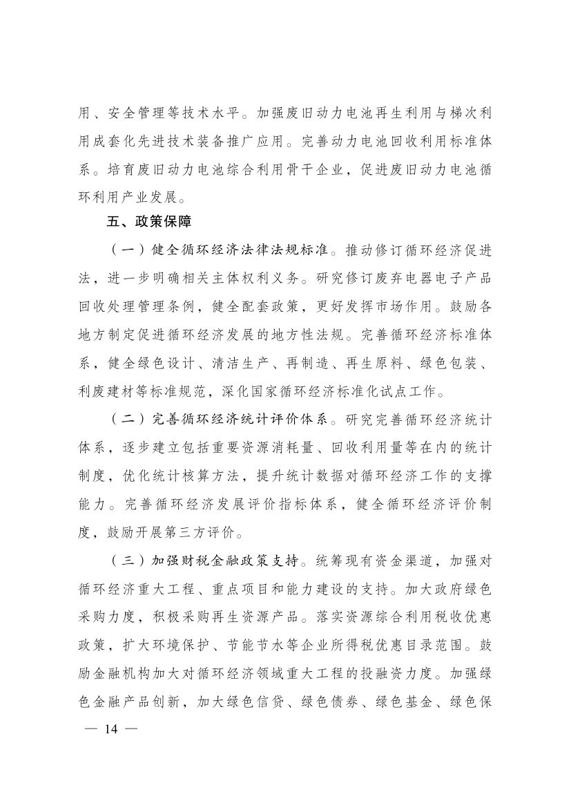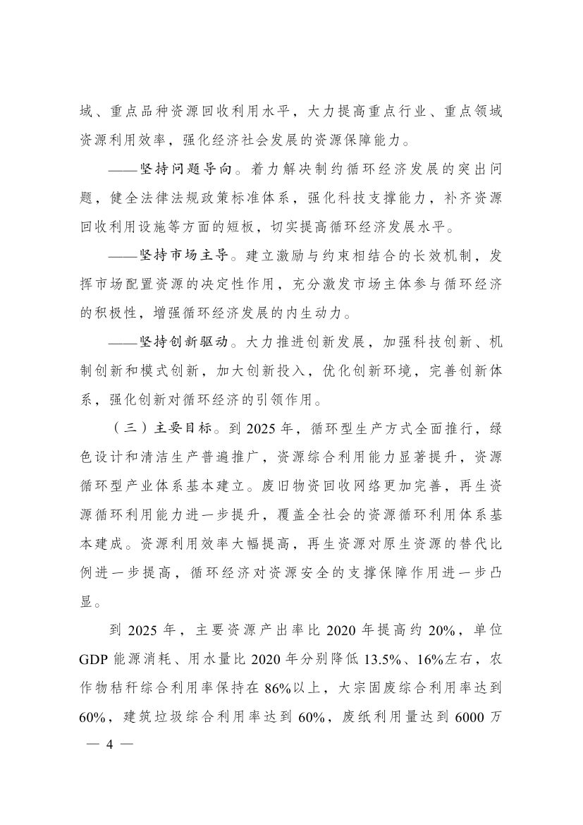 近日,國(guó)家發(fā)展改革委關(guān)于印發(fā)“十四五”循環(huán)經(jīng)濟(jì)發(fā)展規(guī)劃的通知,規(guī)劃提出,制定各地區(qū)循環(huán)化發(fā)展園區(qū)清單,按照“一園一策”原則逐個(gè)制定循環(huán)化改造方案。組織園區(qū)企業(yè)實(shí)施清潔生產(chǎn)改造。積極利用余熱余壓資源,推行熱電聯(lián)產(chǎn)、分布式能源及光伏儲(chǔ)能一體化系統(tǒng)應(yīng)用,推動(dòng)能源梯級(jí)利用。加強(qiáng)園區(qū)產(chǎn)業(yè)循環(huán)鏈接,促進(jìn)企業(yè)廢物資源綜合利用。建設(shè)園區(qū)公共信息服務(wù)平臺(tái),加強(qiáng)園區(qū)物質(zhì)流管理。具備條件的省級(jí)以上園區(qū)2025年底前全部實(shí)施循環(huán)化改造。 原文如下: 國(guó)家發(fā)展改革委關(guān)于印發(fā)“十四五”循環(huán)經(jīng)濟(jì)發(fā)展規(guī)劃的通知 發(fā)改環(huán)資〔2021〕969號(hào) 各省、自治區(qū)、直轄市人民政府,科技部、工業(yè)和信息化部、公安部、財(cái)政部、自然資源部、生態(tài)環(huán)境部、住房城鄉(xiāng)建設(shè)部、交通運(yùn)輸部、水利部、農(nóng)業(yè)農(nóng)村部、商務(wù)部、國(guó)務(wù)院國(guó)資委、海關(guān)總署、稅務(wù)總局、市場(chǎng)監(jiān)管總局、國(guó)家統(tǒng)計(jì)局、銀保監(jiān)會(huì)、國(guó)家林草局、國(guó)家郵政局、供銷合作總社: 《“十四五”循環(huán)經(jīng)濟(jì)發(fā)展規(guī)劃》已經(jīng)國(guó)務(wù)院同意,現(xiàn)印發(fā)給你們,請(qǐng)結(jié)合實(shí)際抓好貫徹落實(shí)。 國(guó)家發(fā)展改革委 2021年7月1日