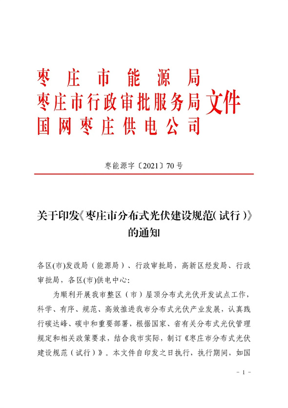 日前,山東棗莊能源局下發(fā)《棗莊市分布式光伏建設(shè)規(guī)范(試行)》,文件要求:綜合考慮開發(fā)規(guī)模、負(fù)荷特性、光伏利用率等因素,按照裝機(jī)容量15%~30%、時(shí)長(zhǎng)2~4小時(shí)配置儲(chǔ)能設(shè)施,或者租賃同等容量的共享儲(chǔ)能設(shè)施。 截至目前,全國(guó)已有30省/市/區(qū)發(fā)布了文件明確風(fēng)電或光伏配置儲(chǔ)能的比例和時(shí)長(zhǎng)要求,而此次棗莊文件是山東全省首個(gè)針對(duì)分布式光伏儲(chǔ)能配置標(biāo)準(zhǔn)文件,同時(shí)也是目前全國(guó)第二例針對(duì)分布式光伏明確提出配儲(chǔ)能的比例要求,更是目前全國(guó)范圍內(nèi)新能源配儲(chǔ)能要求中配置比例最高、時(shí)長(zhǎng)最長(zhǎng)的標(biāo)準(zhǔn)文件。 原文如下: