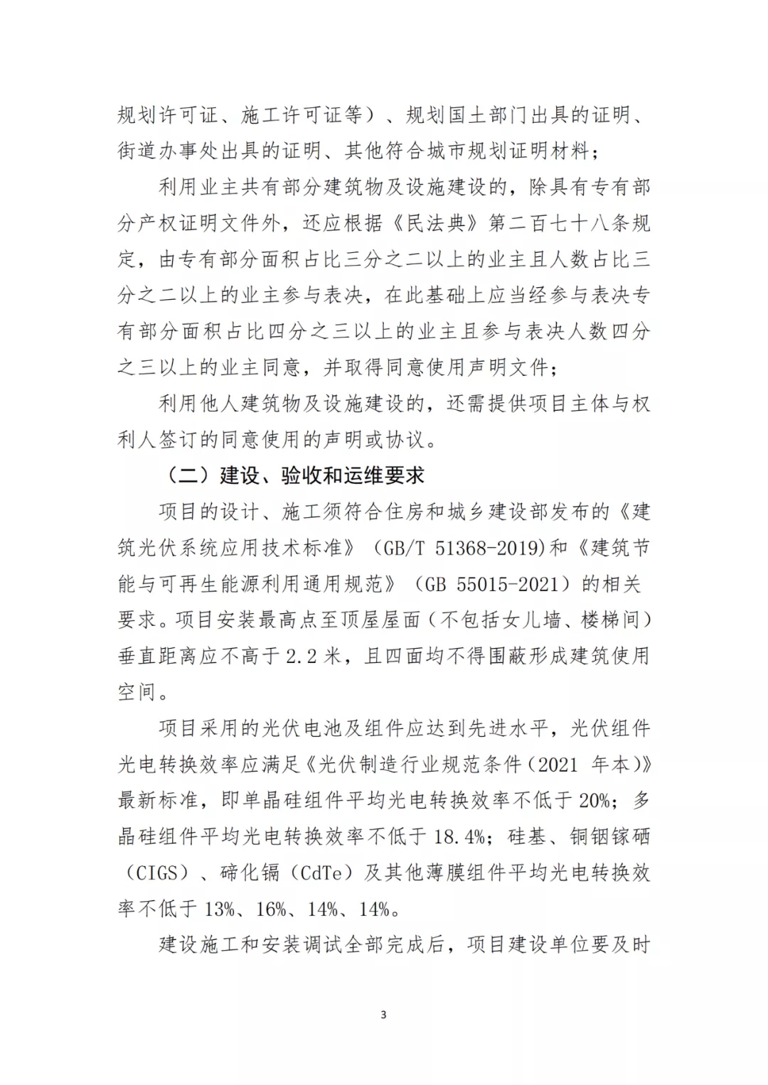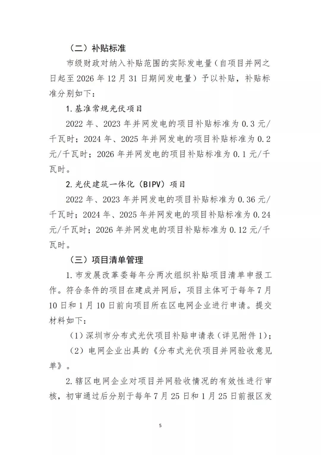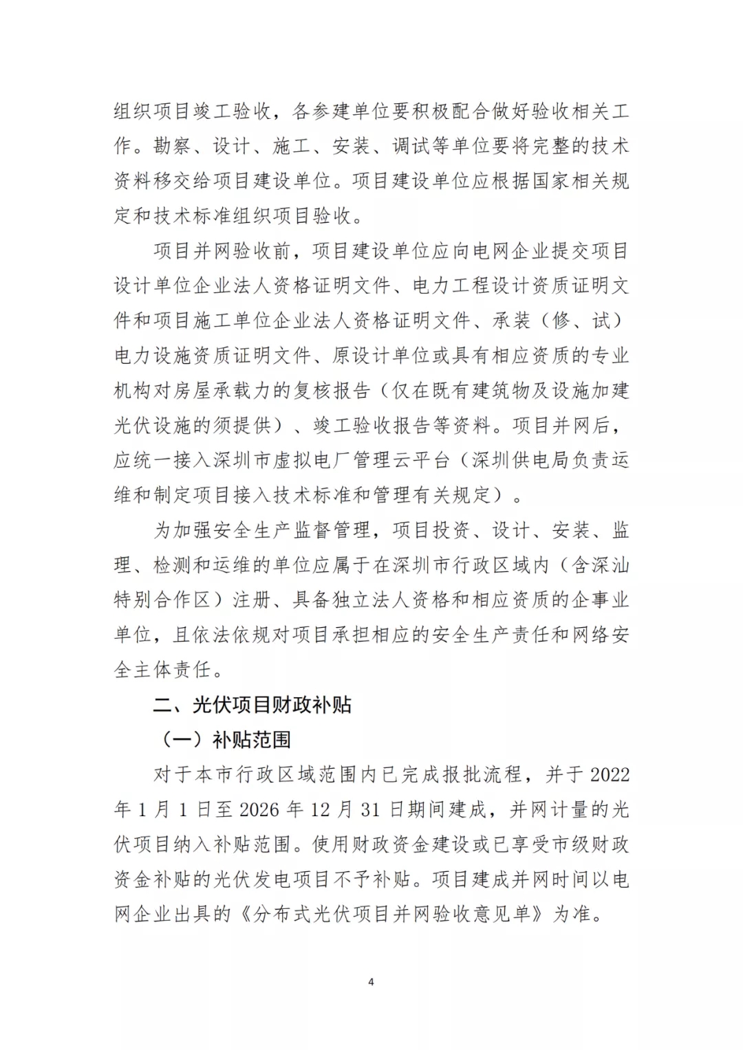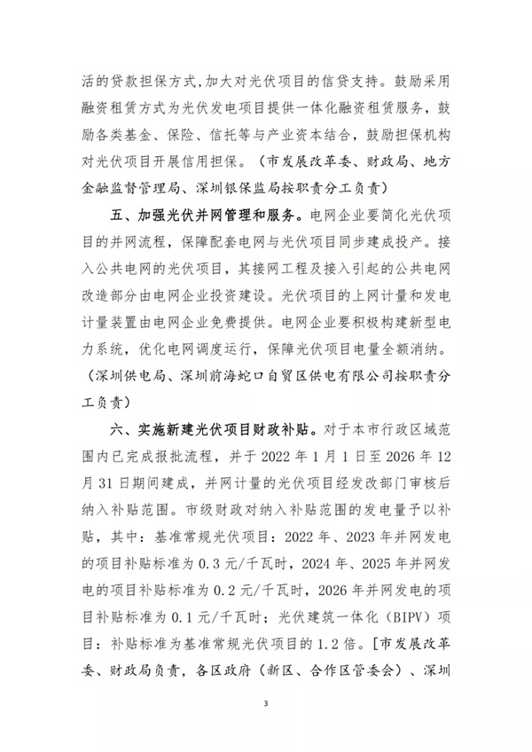 1月21日,深圳市發(fā)改委印發(fā)《分布式光伏發(fā)電項目管理操作指引(征求意見稿)》,就加快推進(jìn)光伏產(chǎn)業(yè)高質(zhì)量發(fā)展,支持分布式光伏發(fā)電項目推廣應(yīng)用給予政策補(bǔ)貼。 根據(jù)文件,2022年1月1日至2026年12月31日期間建成,并網(wǎng)計量的光伏項目經(jīng)發(fā)改部門審核后納入補(bǔ)貼范圍。市級財政對納入補(bǔ)貼范圍的發(fā)電量予以補(bǔ)貼,其中:基準(zhǔn)常規(guī)光伏項目:2022年、2023年并網(wǎng)發(fā)電的項目補(bǔ)貼標(biāo)準(zhǔn)為0.3元/千瓦時,2024年、2025年并網(wǎng)發(fā)電的項目補(bǔ)貼標(biāo)準(zhǔn)為0.2元/千瓦時,2026年并網(wǎng)發(fā)電的項目補(bǔ)貼標(biāo)準(zhǔn)為0.1元/千瓦時;光伏建筑一體化(BIPV)項目:補(bǔ)貼標(biāo)準(zhǔn)為基準(zhǔn)常規(guī)光伏項目的1.2倍。 此外,重點推動在工業(yè)園區(qū)規(guī)?;季止怆娹D(zhuǎn)換效率達(dá)先進(jìn)水平的光伏項目,鼓勵推廣光伏建筑一體化(BIPV)示范項目。各區(qū)政府(新區(qū)、合作區(qū)管委會)要強(qiáng)化光伏項目建設(shè)主體責(zé)任意識,按照年度任務(wù)有序推進(jìn)項目建設(shè),力爭“十四五”期間全市新增光伏裝機(jī)容量達(dá)到1.5GW。