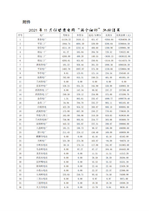 1月29日,甘肅能源監(jiān)管辦發(fā)布關(guān)于公布2021年11月份甘肅電網(wǎng)“兩個細則”執(zhí)行結(jié)果的通知,其中涉及光伏項目233個。 原文如下: 甘肅能源監(jiān)管辦關(guān)于公布2021年11月份甘肅電網(wǎng)“兩個細則”執(zhí)行結(jié)果的通知 國網(wǎng)甘肅省電力公司,甘肅電力交易中心有限公司: 國網(wǎng)甘肅省電力公司報送的《關(guān)于2021年11月份甘肅電網(wǎng)“兩個細則”執(zhí)行結(jié)果的報告》(甘電司調(diào)度〔2022〕30號)收悉。根據(jù)《國家能源局西北監(jiān)管局關(guān)于印發(fā)<西北區(qū)域發(fā)電廠并網(wǎng)運行管理實施細則>及<西北區(qū)域并網(wǎng)發(fā)電廠輔助服務(wù)管理實施細則>的通知》(西北監(jiān)能市場〔2018〕66號)規(guī)定,對2021年11月份甘肅電網(wǎng)“兩個細則”考核補償結(jié)果完成復(fù)核,現(xiàn)予公布,請甘肅電力交易中心有限公司依據(jù)附件結(jié)算。 特此通知。 甘肅能源監(jiān)管辦 2022年1月20日