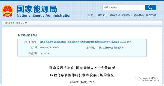 兩部委:鼓勵(lì)BIPV、農(nóng)村光伏,推進(jìn)風(fēng)光大基地建設(shè)!國家發(fā)展改革委 國家能源局發(fā)布關(guān)于完善能源綠色低碳轉(zhuǎn)型體制機(jī)制和政策措施的意見。 意見指出:完善建筑可再生能源應(yīng)用標(biāo)準(zhǔn),鼓勵(lì)光伏建筑一體化應(yīng)用,支持利用太陽能、地?zé)崮芎蜕镔|(zhì)能等建設(shè)可再生能源建筑供能系統(tǒng)。 推動(dòng)構(gòu)建以清潔低碳能源為主體的能源供應(yīng)體系。以沙漠、戈壁、荒漠地區(qū)為重點(diǎn),加快推進(jìn)大型風(fēng)電、光伏發(fā)電基地建設(shè),對(duì)區(qū)域內(nèi)現(xiàn)有煤電機(jī)組進(jìn)行升級(jí)改造,探索建立送受兩端協(xié)同為新能源電力輸送提供調(diào)節(jié)的機(jī)制,支持新能源電力能建盡建、能并盡并、能發(fā)盡發(fā)。 創(chuàng)新農(nóng)村可再生能源開發(fā)利用機(jī)制。在農(nóng)村地區(qū)優(yōu)先支持屋頂分布式光伏發(fā)電以及沼氣發(fā)電等生物質(zhì)能發(fā)電接入電網(wǎng),電網(wǎng)企業(yè)等應(yīng)當(dāng)優(yōu)先收購其發(fā)電量。鼓勵(lì)利用農(nóng)村地區(qū)適宜分散開發(fā)風(fēng)電、光伏發(fā)電的土地,探索統(tǒng)一規(guī)劃、分散布局、農(nóng)企合作、利益共享的可再生能源項(xiàng)目投資經(jīng)營模式。 推動(dòng)能源電子產(chǎn)業(yè)高質(zhì)量發(fā)展,促進(jìn)信息技術(shù)及產(chǎn)品與清 潔低碳能源融合創(chuàng)新,加快智能光伏創(chuàng)新升級(jí) 。 各省、自治區(qū)、直轄市人民政府,新疆生產(chǎn)建設(shè)兵團(tuán),國務(wù)院有關(guān)部門,有關(guān)中央企業(yè),有關(guān)行業(yè)協(xié)會(huì): 能源生產(chǎn)和消費(fèi)相關(guān)活動(dòng)是最主要的二氧化碳排放源,大力推動(dòng)能源領(lǐng)域碳減排是做好碳達(dá)峰碳中和工作,以及加快構(gòu)建現(xiàn)代能源體系的重要舉措。黨的十八大以來,各地區(qū)、各有關(guān)部門圍繞能源綠色低碳發(fā)展制定了一系列政策措施,推動(dòng)太陽能、風(fēng)能、水能、生物質(zhì)能、地?zé)崮艿惹鍧嵞茉撮_發(fā)利用取得了明顯成效,但現(xiàn)有的體制機(jī)制、政策體系、治理方式等仍然面臨一些困難和挑戰(zhàn),難以適應(yīng)新形勢下推進(jìn)能源綠色低碳轉(zhuǎn)型的需要。為深入貫徹落實(shí)《中共中央、國務(wù)院關(guān)于完整準(zhǔn)確全面貫徹新發(fā)展理念做好碳達(dá)峰碳中和工作的意見》和《2030年前碳達(dá)峰行動(dòng)方案》有關(guān)要求,經(jīng)國務(wù)院同意,現(xiàn)就完善能源綠色低碳轉(zhuǎn)型的體制機(jī)制和政策措施提出以下意見。 一、總體要求 (一)指導(dǎo)思想。 以習(xí)近平新時(shí)代中國特色社會(huì)主義思想為指導(dǎo),全面貫徹黨的十九大和十九屆歷次全會(huì)精神,深入貫徹習(xí)近平生態(tài)文明思想,堅(jiān)持穩(wěn)中求進(jìn)工作總基調(diào),立足新發(fā)展階段,完整、準(zhǔn)確、全面貫徹新發(fā)展理念,構(gòu)建新發(fā)展格局,深入推動(dòng)能源消費(fèi)革命、供給革命、技術(shù)革命、體制革命,全方位加強(qiáng)國際合作,從國情實(shí)際出發(fā),統(tǒng)籌發(fā)展與安全、穩(wěn)增長和調(diào)結(jié)構(gòu),深化能源領(lǐng)域體制機(jī)制改革創(chuàng)新,加快構(gòu)建清潔低碳、安全高效的能源體系,促進(jìn)能源高質(zhì)量發(fā)展和經(jīng)濟(jì)社會(huì)發(fā)展全面綠色轉(zhuǎn)型,為科學(xué)有序推動(dòng)如期實(shí)現(xiàn)碳達(dá)峰、碳中和目標(biāo)和建設(shè)現(xiàn)代化經(jīng)濟(jì)體系提供保障。 (二)基本原則。 ——堅(jiān)持系統(tǒng)觀念、統(tǒng)籌推進(jìn)。加強(qiáng)頂層設(shè)計(jì),發(fā)揮制度優(yōu)勢,處理好發(fā)展和減排、整體和局部、短期和中長期的關(guān)系,處理好轉(zhuǎn)型各階段不同能源品種之間的互補(bǔ)、協(xié)調(diào)、替代關(guān)系,推動(dòng)煤炭和新能源優(yōu)化組合,統(tǒng)籌推進(jìn)全國及各地區(qū)能源綠色低碳轉(zhuǎn)型。 ——堅(jiān)持保障安全、有序轉(zhuǎn)型。在保障能源安全的前提下有序推進(jìn)能源綠色低碳轉(zhuǎn)型,先立后破,堅(jiān)持全國“一盤棋”,加強(qiáng)轉(zhuǎn)型中的風(fēng)險(xiǎn)識(shí)別和管控。在加快形成清潔低碳能源可靠供應(yīng)能力基礎(chǔ)上,逐步對(duì)化石能源進(jìn)行安全可靠替代。 ——堅(jiān)持創(chuàng)新驅(qū)動(dòng)、集約高效。完善能源領(lǐng)域創(chuàng)新體系和激勵(lì)機(jī)制,提升關(guān)鍵核心技術(shù)創(chuàng)新能力。貫徹節(jié)約優(yōu)先方針,著力降低單位產(chǎn)出資源消耗和碳排放,增強(qiáng)能源系統(tǒng)運(yùn)行和資源配置效率,提高經(jīng)濟(jì)社會(huì)綜合效益。加快形成減污降碳的激勵(lì)約束機(jī)制。 ——堅(jiān)持市場主導(dǎo)、政府引導(dǎo)。深化能源領(lǐng)域體制改革,充分發(fā)揮市場在資源配置中的決定性作用,構(gòu)建公平開放、有效競爭的能源市場體系。更好發(fā)揮政府作用,在規(guī)劃引領(lǐng)、政策扶持、市場監(jiān)管等方面加強(qiáng)引導(dǎo),營造良好的發(fā)展環(huán)境。 (三)主要目標(biāo)。 “十四五”時(shí)期,基本建立推進(jìn)能源綠色低碳發(fā)展的制度框架,形成