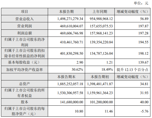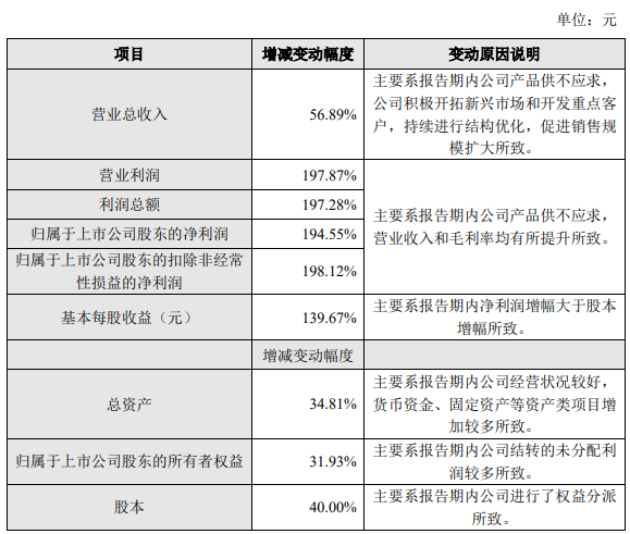 3月4日,無錫新潔能發(fā)布2021年度業(yè)績(jī)快報(bào)公告,報(bào)告期內(nèi)公司營(yíng)業(yè)總收入1,498,271,279.34元,增加56.89%,主要系報(bào)告期內(nèi)公司產(chǎn)品供不應(yīng)求, 公司積極開拓新興市場(chǎng)和開發(fā)重點(diǎn)客 戶,持續(xù)進(jìn)行結(jié)構(gòu)優(yōu)化,促進(jìn)銷售規(guī) 模擴(kuò)大所致;營(yíng)業(yè)利潤(rùn)469,610,004.07元,增加197.87%;歸屬于上市公司股東的凈 利潤(rùn)410,461,760.71元,增加194.55%,主要系報(bào)告期內(nèi)公司產(chǎn)品供不應(yīng)求, 營(yíng)業(yè)收入和毛利率均有所提升所致。 詳情如下: 2021年度主要財(cái)務(wù)數(shù)據(jù)和指標(biāo):