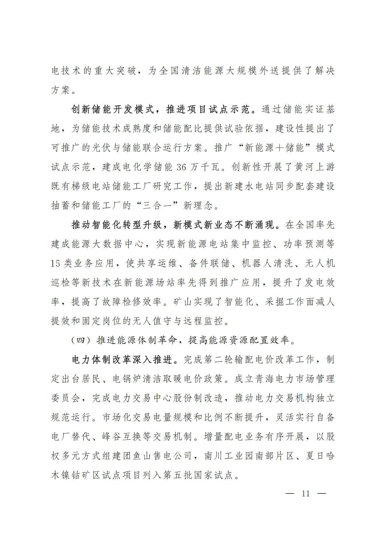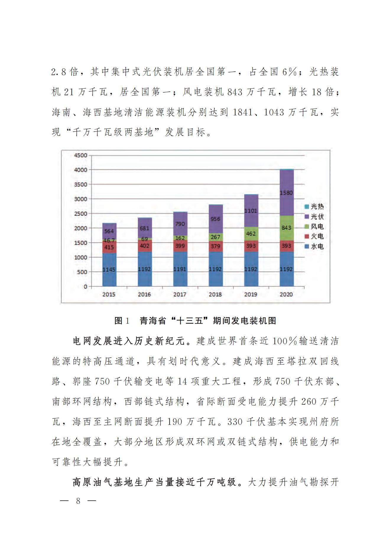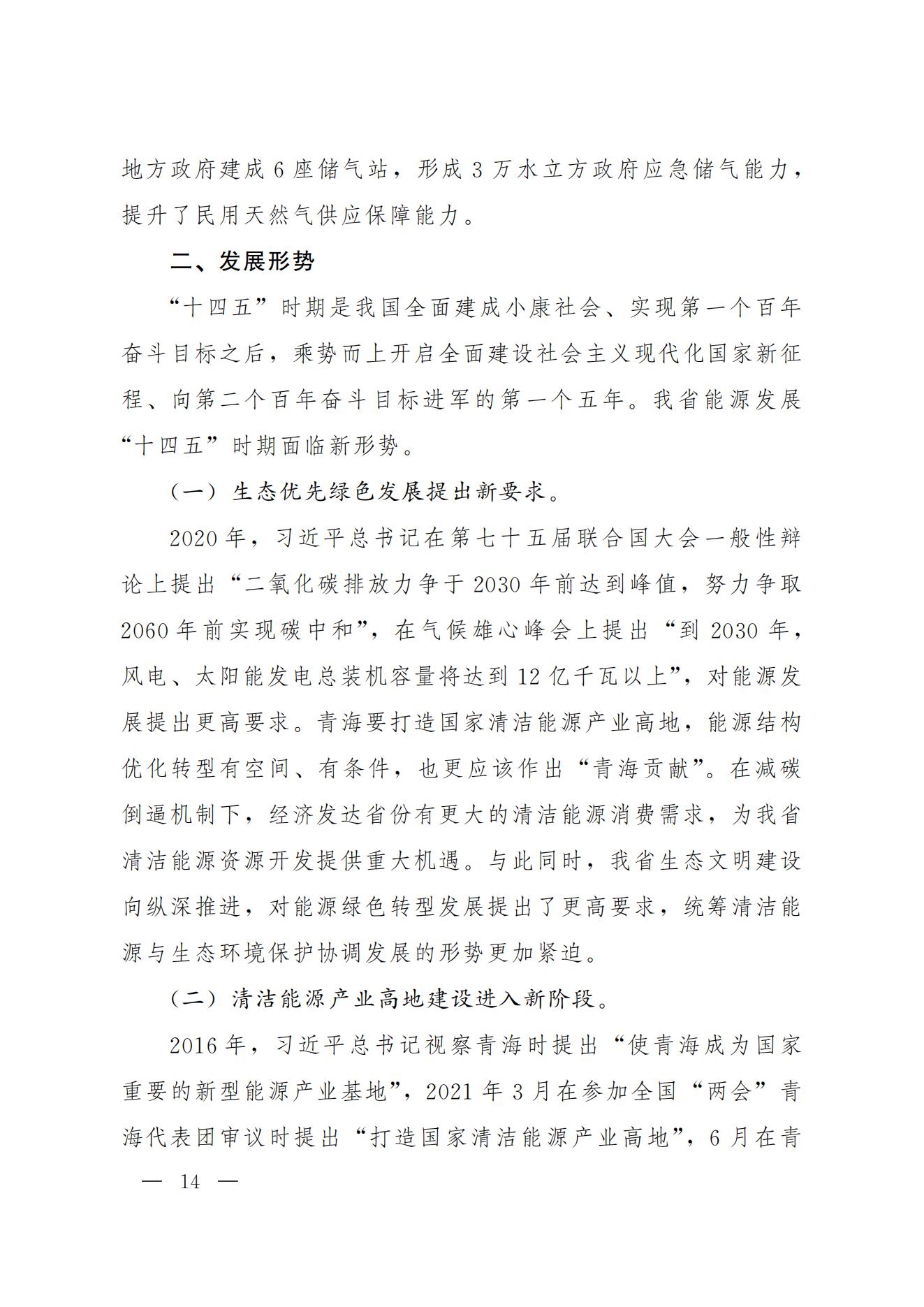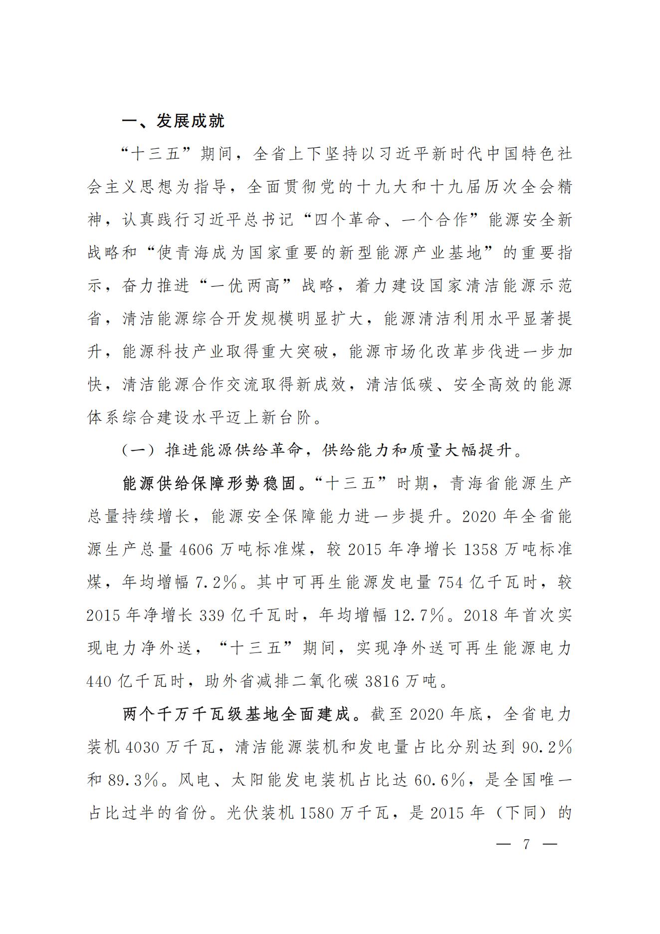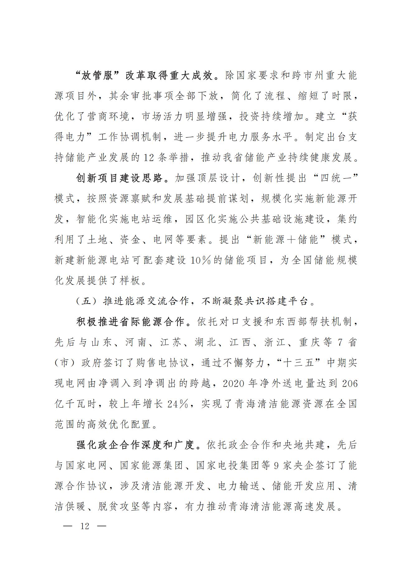 2月28日,青海省人民政府印發(fā)《青海省“十四五”能源發(fā)展規(guī)劃》,規(guī)劃明確到2025年光伏發(fā)電4580萬千瓦,風(fēng)電1650萬千瓦。同時(shí)還明確到2025年,力爭建成電化學(xué)等新型儲能600萬千瓦。 積極打造國家級光伏發(fā)電和風(fēng)電基地。積極推進(jìn)光伏發(fā)電和風(fēng)電基地化規(guī)?;_發(fā),形成以海南千萬千瓦級多能互補(bǔ)100%清潔能源基地、海西千萬千瓦級“柴達(dá)木光伏走廊”清潔能源基地為依托,輻射海北、黃南州的新能源開發(fā)格局。 擴(kuò)大電力跨省外送通道。在實(shí)現(xiàn)青海省內(nèi)清潔低碳發(fā)展的基礎(chǔ)上,推進(jìn)跨省電力外送通道布局和建設(shè),積極擴(kuò)大綠色電力跨省跨區(qū)外送規(guī)模,支撐清潔能源產(chǎn)業(yè)高地建設(shè),服務(wù)全國碳達(dá)峰目標(biāo)實(shí)現(xiàn)。建成投產(chǎn)青海至河南±800千伏特高壓直流工程二期配套電源,實(shí)現(xiàn)滿負(fù)荷送電。 提升多能互補(bǔ)的儲能調(diào)峰能力。積極發(fā)展優(yōu)質(zhì)調(diào)峰電源、加快推動黃河上游梯級儲能電站建設(shè)、全面推進(jìn)電化學(xué)等新型儲能設(shè)施建設(shè)。依托青海鹽湖資源優(yōu)勢,積極推廣“新能源+儲能”模式,開展壓縮空氣、飛輪等儲能試點(diǎn),探索建立共享儲能運(yùn)行模式,推動電源側(cè)、電網(wǎng)側(cè)和用戶側(cè)百萬千瓦級化學(xué)儲能示范建設(shè),提高電力系統(tǒng)中短周期儲能調(diào)節(jié)能力。到2025年,力爭建成電化學(xué)等新型儲能600萬千瓦。 全文如下: 青海省人民政府辦公廳關(guān)于印發(fā)青海省“十四五”能源發(fā)展規(guī)劃的通知 青政辦〔2022〕12號 各市、自治州人民政府,省政府各委、辦、廳、局: 《青海省“十四五”能源發(fā)展規(guī)劃》已經(jīng)省政府第94次常務(wù)會議審議通過,現(xiàn)印發(fā)給你們,請結(jié)合實(shí)際,認(rèn)真抓好貫徹落實(shí)。 青海省人民政府辦公廳 2022年2月21日