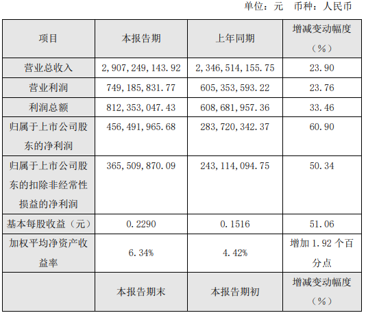 3月12日,浙江省新能源投資集團(tuán)股份有限公司發(fā)布2021年度業(yè)績(jī)快報(bào)公告,報(bào)告期內(nèi),公司實(shí)現(xiàn)營(yíng)業(yè)總收入290,724.91萬(wàn)元,同比增長(zhǎng)23.90%;實(shí)現(xiàn)利潤(rùn)總額81,235.30萬(wàn)元,同比增長(zhǎng)33.46%;歸屬于上市公司股東的凈利潤(rùn)45,649.20萬(wàn)元,同比增長(zhǎng)60.90%。 主要原因?yàn)椋汗拘略鲲L(fēng)電、光伏項(xiàng)目投產(chǎn)發(fā)電及水電項(xiàng)目資產(chǎn)收購(gòu),總裝機(jī)容量較上年同期有所增加,經(jīng)營(yíng)業(yè)績(jī)相應(yīng)提升。