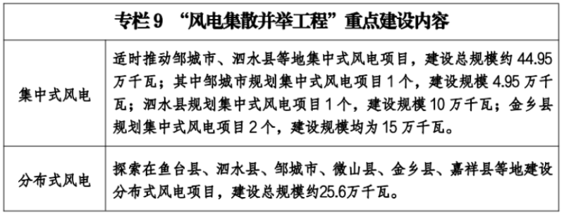 風(fēng)電方面:集散有序推進風(fēng)力發(fā)電。加強陸地風(fēng)能資源管理,依托鄒城、泗水已建成風(fēng)電站的經(jīng)驗,考慮生態(tài)紅線、用地等因素,在鄒城、泗水等山區(qū)適時推動集中式風(fēng)電工程建設(shè),探索在魚臺、泗水、鄒城、微山、金鄉(xiāng)、嘉祥等平原地區(qū)推進分布式風(fēng)電項目,集散有序推進風(fēng)力發(fā)電,逐步增加風(fēng)電規(guī)模。到2025年,建成、在建風(fēng)電裝機總量力爭達到95萬千瓦左右。
