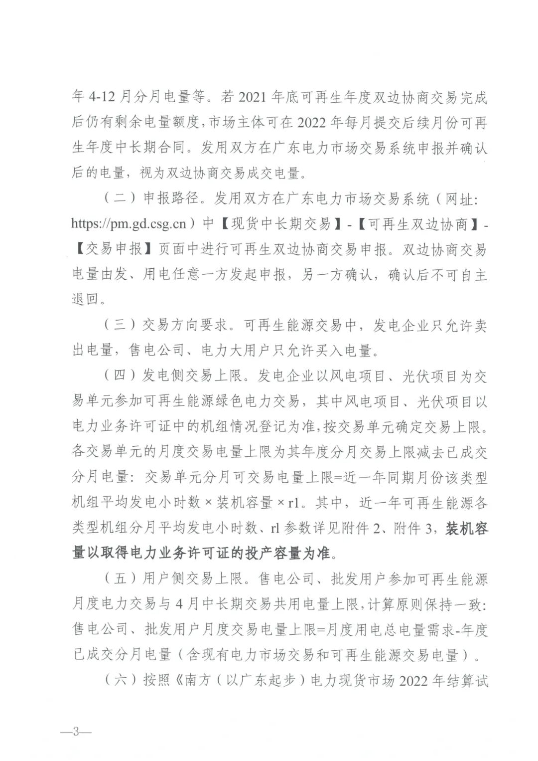 3月22日,廣東電力交易中心發(fā)布2022年4月份可再生能源綠色電力交易的通知,通知指出: 參與主體 (一)發(fā)電側(cè)。2022年參加可再生能源綠色電力交易的發(fā)電側(cè)市場(chǎng)主體應(yīng)符合以下條件: 投產(chǎn)容量已取得對(duì)應(yīng)的電力業(yè)務(wù)許可證,滿足準(zhǔn)入標(biāo)準(zhǔn)、具備分時(shí)計(jì)量條件后,在交易中心完成注冊(cè)的可再生能源發(fā)電企業(yè),可參與2022年可再生能源綠色電力交易。發(fā)電企業(yè)以風(fēng)電項(xiàng)目、光伏項(xiàng)目為交易單元參加可再生能源綠色電力交易,按交易單元確定交易上限,其中風(fēng)電項(xiàng)目、光伏項(xiàng)目以電力業(yè)務(wù)許可證中的機(jī)組登記情況為準(zhǔn)。 (二)用戶側(cè)。2022年參加可再生能源綠色電力交易的用戶側(cè)市場(chǎng)主體準(zhǔn)入條件按照《廣東省能源局國(guó)家能源局南方監(jiān)管局關(guān)于2022年電力市場(chǎng)交易有關(guān)事項(xiàng)的通知》(粵能電力[2021]110號(hào))文件要求執(zhí)行。其中,電力大用戶可直接參與或通過(guò)售電公司參與可再生能源綠色電力交易,一般用戶通過(guò)售電公司參與可再生能源綠色電力交易,參與可再生能源綠色電力交易的零售代理關(guān)系與現(xiàn)有電力市場(chǎng)交易需保持一致。 申報(bào)時(shí)間為3月23日。