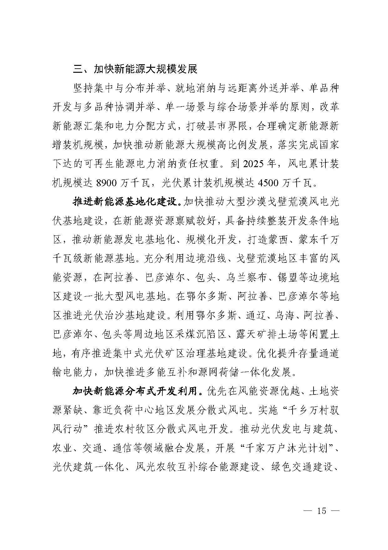 內(nèi)蒙印發(fā)十四五電力規(guī)劃:到2025年,新型儲能達到5GW以上3月29日,內(nèi)蒙古印發(fā)“十四五”電力規(guī)劃,瞄定新能源裝機規(guī)模達1.35億千瓦的發(fā)展目標,其中光伏裝機45GW、風(fēng)電裝機89GW。根據(jù)內(nèi)蒙2021年風(fēng)光裝機累計規(guī)模來看,“十四五”內(nèi)蒙古光伏新增空間31GW、風(fēng)電新增49GW。到2025年,新型儲能裝機力爭達到500萬千瓦以上。 以電力系統(tǒng)實際需求為導(dǎo)向,有效銜接新型儲能相關(guān)國家政策,因地制宜布局建設(shè)新型儲能設(shè)施,促進新型儲能多元化發(fā)展和多場景應(yīng)用,完善推動新型儲能發(fā)展的 商業(yè)模式和保障機制,推動新型儲能示范應(yīng)用,推動儲能設(shè)施向電力系統(tǒng)源網(wǎng)荷各環(huán)節(jié)提供服務(wù)。大力推進電源側(cè)儲能發(fā)展,發(fā)展新能源基地配套儲能項目,新建新能源電站按照不低于15%(2小時)配置儲能裝置,布局一批風(fēng)光儲、風(fēng)光火(儲)、風(fēng)光水(儲)等多能互補型電站,提高電站整體調(diào)峰、調(diào)頻深度和響應(yīng)速率,促進高比例新能源高效利用。積極支持用戶側(cè)儲能發(fā)展,示范推廣儲能融合發(fā)展的多種場景,布局一批源網(wǎng)荷儲一體化項目,鼓勵發(fā)展不間斷電源、電動汽車等分散式儲能設(shè)施。推動電網(wǎng)側(cè)儲能發(fā)展合理布局,在電網(wǎng)關(guān)鍵節(jié)點、偏遠地區(qū)建設(shè)獨立(共享)儲能電站,提高供電可靠性,提升系統(tǒng)消納能力。到2025年,新型儲能裝機力爭達到500萬千瓦以上 大規(guī)模儲能、柔性輸電等重大關(guān)鍵技術(shù)加速應(yīng)用,全區(qū)新型儲能規(guī)模達到500萬千瓦以上。智慧電廠、虛擬電廠等新業(yè)態(tài)新模式示范應(yīng)用。 積極推動分布式光伏與儲能、微電網(wǎng)等融合發(fā)展。到2025年,累計建成分散式風(fēng)電項目約400萬千瓦、分布式光伏發(fā)電規(guī)模約600萬千瓦。 原文如下: 內(nèi)蒙古自治區(qū)能源局關(guān)于印發(fā)《內(nèi)蒙古自治區(qū)“十四五”電力發(fā)展規(guī)劃》的通知 內(nèi)能電力字〔2022〕105號 各盟市能源局、有關(guān)盟市發(fā)展改革委(工信局),滿洲里市、二連浩特市發(fā)展改革委,內(nèi)蒙古電力(集團)有限責(zé)任公司、國網(wǎng)內(nèi)蒙古東部電力有限公司: 為深入貫徹落實習(xí)近平總書記“四個革命、一個合作”能源安全新戰(zhàn)略,落實國家“碳達峰、碳中和”戰(zhàn)略和自治區(qū)第十一次黨代會“兩率先、兩超過”目標,根據(jù)《“十四五”電力發(fā)展規(guī)劃》《內(nèi)蒙古自治區(qū)國民經(jīng)濟和社會發(fā)展第十四個五年規(guī)劃和2035年遠景目標綱要》《內(nèi)蒙古自治區(qū)“十四五”能源發(fā)展規(guī)劃》有關(guān)要求,我們組織編制了《內(nèi)蒙古自治區(qū)“十四五”電力發(fā)展規(guī)劃》?,F(xiàn)印發(fā)給你們,請遵照執(zhí)行。 附件:內(nèi)蒙古自治區(qū)“十四五”電力發(fā)展規(guī)劃