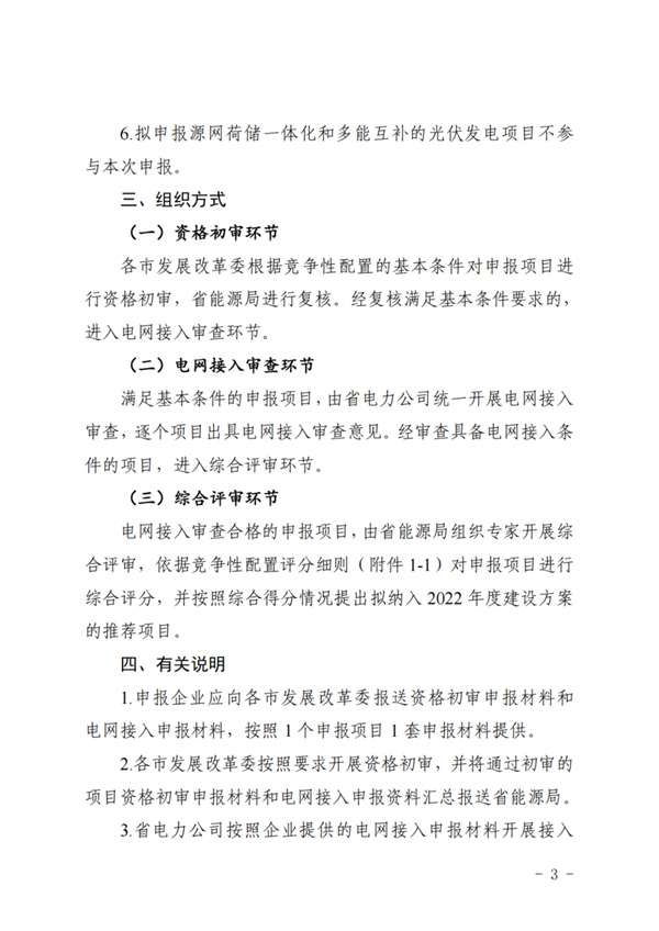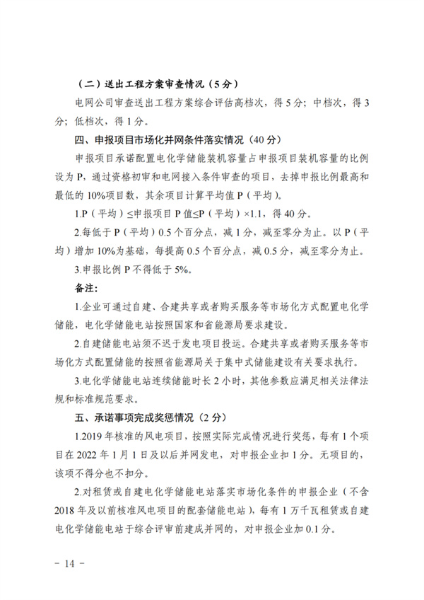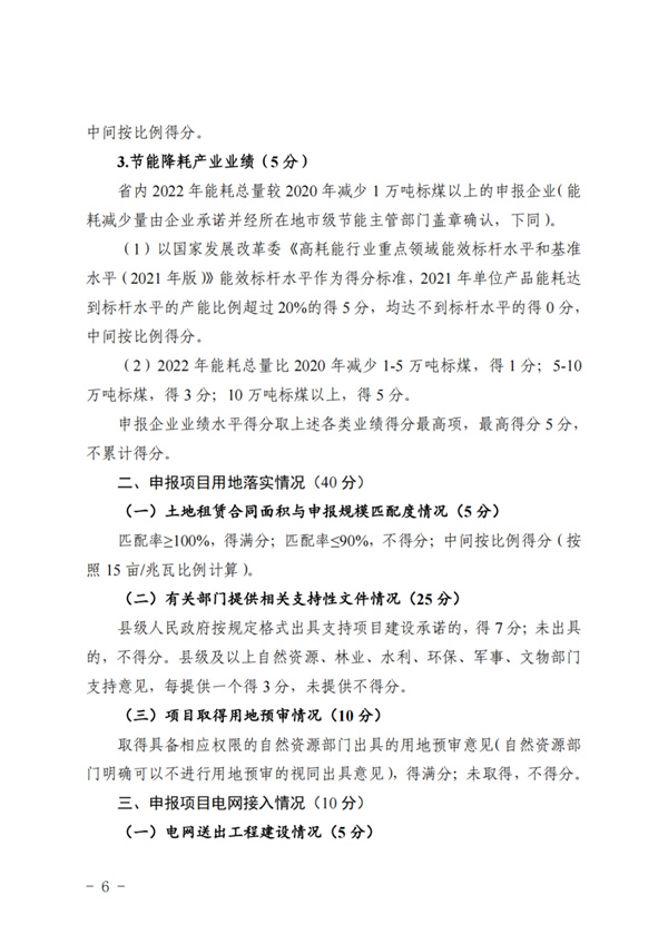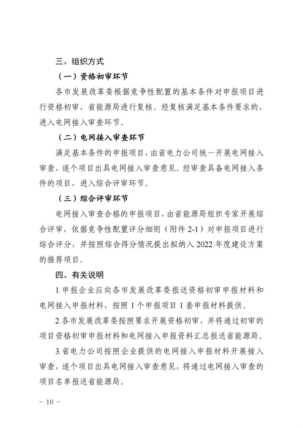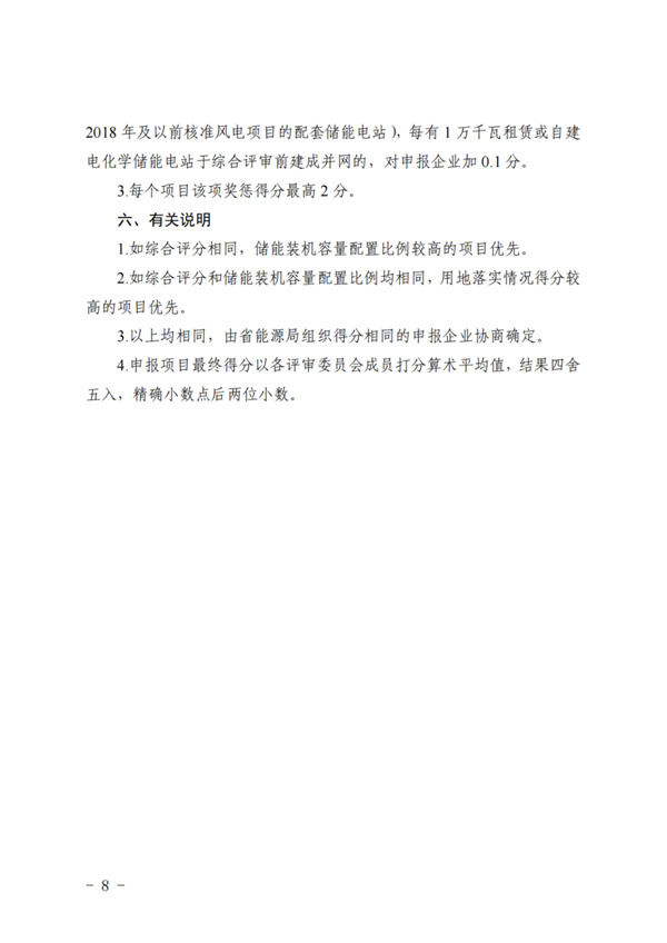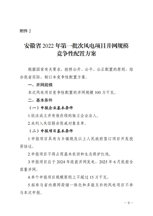 3月29日,安徽省能源局印發(fā)《關(guān)于征求2022年第一批次光伏發(fā)電和風(fēng)電項(xiàng)目并網(wǎng)規(guī)模競爭性配置方案意見的函》,擬安排1.5GW光伏、1GW風(fēng)電項(xiàng)目,并就競爭性配置方案給出指導(dǎo)意見。 根據(jù)文件,本次申報(bào)為6MW以上光伏電站,須與鎮(zhèn)級(jí)及以上人民政府簽訂開發(fā)投資協(xié)議和與土地權(quán)屬單位或者權(quán)屬人簽訂的土地租賃協(xié)議,不得占用基本農(nóng)田,單體項(xiàng)目規(guī)模不得超過200MW,擬申報(bào)源網(wǎng)荷儲(chǔ)一體化和多能互補(bǔ)的光伏發(fā)電項(xiàng)目不參與本次申報(bào)。申報(bào)項(xiàng)目應(yīng)在2023年底前建成并網(wǎng),2024年6月底前全容量并網(wǎng)。 項(xiàng)目申報(bào)先經(jīng)過各市發(fā)改委初審,再進(jìn)入省能源局復(fù)審,滿足條件的項(xiàng)目由省電力公司進(jìn)行統(tǒng)一的電網(wǎng)接入審查,最終進(jìn)入終審環(huán)節(jié),根據(jù)具體的評(píng)分細(xì)則進(jìn)行打分。單一集團(tuán)公司所得項(xiàng)目規(guī)模不能超過300MW。 在具體評(píng)分細(xì)則方面,申報(bào)企業(yè)投資投資能力占比10%,分為資本金落實(shí)情況和企業(yè)業(yè)績水平。其中,企業(yè)業(yè)績水平為5分,分別可從光伏電站持有量、光伏制造業(yè)國內(nèi)、省內(nèi)納稅額度(10億元、1億元)以及節(jié)能降耗產(chǎn)業(yè)業(yè)績獲取分值。 項(xiàng)目用地落實(shí)情況占比40%,分別為土地租賃合同面積與規(guī)模申報(bào)匹配程度,縣級(jí)政府按規(guī)定格式出具支持項(xiàng)目建設(shè)承諾,自然資源、林業(yè)、水利、環(huán)保、軍事、文物部門支持意見以及項(xiàng)目取得用地預(yù)審情況。電網(wǎng)接入情況占比10%,具體為送出工程建設(shè)情況與以及送出工程方案預(yù)審。 市場化并網(wǎng)條件落實(shí)情況占比40%,主要通過申報(bào)項(xiàng)目承諾配置電化學(xué)儲(chǔ)能裝機(jī)容量占申報(bào)項(xiàng)目裝機(jī)容量的比例進(jìn)行評(píng)分,但最低比例不得低于5%,時(shí)長不得低于2小時(shí)。 此外,還有額外2分的承諾事項(xiàng)完成獎(jiǎng)懲情況,對(duì)納入2020年國家平價(jià)和競價(jià)光伏發(fā)電項(xiàng)目,每有1個(gè)項(xiàng)目在2022年1月1日及以后并網(wǎng)發(fā)電的,對(duì)申報(bào)企業(yè)扣1分,無項(xiàng)目不得分也不扣分。對(duì)配儲(chǔ)能電站,每有1萬千瓦租賃或自建電化學(xué)儲(chǔ)能電站于綜合評(píng)審前建成并網(wǎng)的,對(duì)申報(bào)企業(yè)加0.1分。 若評(píng)分相同則儲(chǔ)能配比比例高的優(yōu)先,若比例也相同則以用地落實(shí)情況得分較高的項(xiàng)目優(yōu)先。 全文如下: