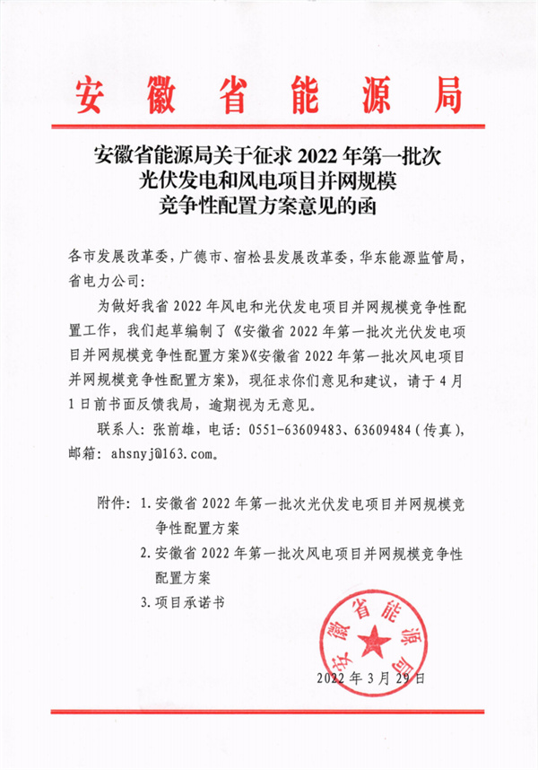 安徽風(fēng)光競配征求意見:光伏1.5GW、風(fēng)電1GW!2022-04-06 16:08瀏覽數(shù):6次