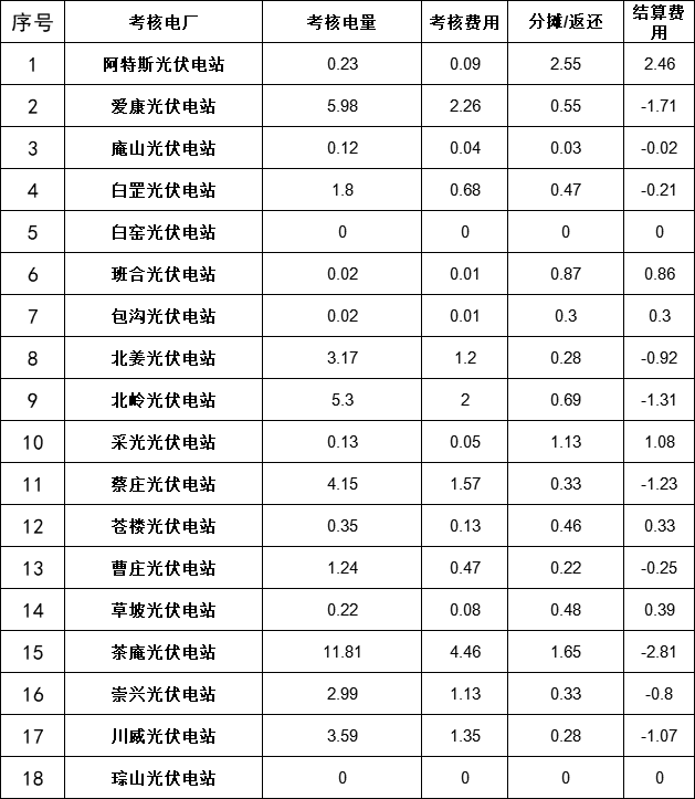 4月12日,河南能源監(jiān)管辦發(fā)布關(guān)于2022年2月份新能源電廠并網(wǎng)運(yùn)行管理結(jié)算情況的通知,光伏項(xiàng)目140個(gè)。 國(guó)網(wǎng)河南省電力公司、有關(guān)發(fā)電企業(yè): 近期,國(guó)網(wǎng)河南省電力公司對(duì)我省2022年2月份“新能源并網(wǎng)運(yùn)行管理”考核情況進(jìn)行了匯總和披露,各發(fā)電企業(yè)對(duì)結(jié)算數(shù)據(jù)進(jìn)行了復(fù)核和確認(rèn),國(guó)網(wǎng)河南省電力公司將公示后的結(jié)算情況上報(bào)河南能源監(jiān)管辦。 現(xiàn)將我省2022年2月份“新能源電廠并網(wǎng)運(yùn)行管理”結(jié)算情況通知如下(見(jiàn)附件)。請(qǐng)國(guó)網(wǎng)河南省電力公司和各發(fā)電企業(yè)按照通知的結(jié)算費(fèi)用,隨同電廠電費(fèi)一并結(jié)算。執(zhí)行中有何問(wèn)題請(qǐng)及時(shí)報(bào)河南能源監(jiān)管辦。 河南能源監(jiān)管辦 2022年4月6日 附件: 2022年2月份河南省“新能源電廠并網(wǎng)運(yùn)行管理”結(jié)算情況(光伏) 單位:電量:萬(wàn)千瓦時(shí),費(fèi)用:萬(wàn)元