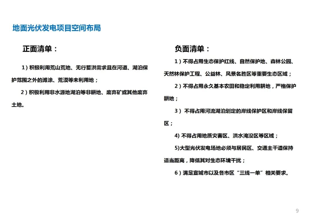 4月18日,安徽省宣城市自然資源規(guī)劃局公示光伏發(fā)電項(xiàng)目空間布局專項(xiàng)規(guī)劃(2021-2035年),此規(guī)劃遠(yuǎn)景考慮至2050年,規(guī)劃范圍包含宣州區(qū)、寧國市、廣德市、郎溪縣、涇縣、旌德縣、績(jī)溪縣,面積約12340平方公里。 《規(guī)劃》通過對(duì)國家省市等光伏發(fā)電產(chǎn)業(yè)相關(guān)政策、未來發(fā)展趨勢(shì)與宣城市現(xiàn)狀等分析研究,結(jié)合相關(guān)規(guī)范中的分類與定義,將光伏發(fā)電系統(tǒng)按照空間載體差異分為地面光伏發(fā)電系統(tǒng)、分布式光伏發(fā)電系統(tǒng)和獨(dú)立光伏發(fā)電系統(tǒng)等三類?!兑?guī)劃》對(duì)三種類型分別進(jìn)行空間布局與建設(shè)指引,同時(shí)制定了負(fù)面清單。 原文如下: 宣城市光伏發(fā)電項(xiàng)目空間布局專項(xiàng)規(guī)劃(2021-2035年)公示 光伏產(chǎn)業(yè)是我市“十四五”乃至未來更長(zhǎng)時(shí)間戰(zhàn)略性新興產(chǎn)業(yè)發(fā)展的重點(diǎn)之一,為落實(shí)市委市政府提出的推進(jìn)宣城市光電城市建設(shè)的要求,結(jié)合我市光伏產(chǎn)業(yè)培育與發(fā)展,我局組織編制了《宣城市光伏發(fā)電項(xiàng)目空間布局專項(xiàng)規(guī)劃(2021-2035年)》(以下簡(jiǎn)稱《規(guī)劃》)。 一、規(guī)劃范圍 規(guī)劃范圍:包含宣州區(qū)、寧國市、廣德市、郎溪縣、涇縣、旌德縣、績(jī)溪縣,面積約12340平方公里。 二、規(guī)劃期限 規(guī)劃期限:2021年—2035年,遠(yuǎn)景考慮至2050年。 三、規(guī)劃內(nèi)容 《規(guī)劃》通過對(duì)國家省市等光伏發(fā)電產(chǎn)業(yè)相關(guān)政策、未來發(fā)展趨勢(shì)與宣城市現(xiàn)狀等分析研究,結(jié)合相關(guān)規(guī)范中的分類與定義,將光伏發(fā)電系統(tǒng)按照空間載體差異分為地面光伏發(fā)電系統(tǒng)、分布式光伏發(fā)電系統(tǒng)和獨(dú)立光伏發(fā)電系統(tǒng)等三類。《規(guī)劃》對(duì)三種類型分別進(jìn)行空間布局與建設(shè)指引,同時(shí)制定了負(fù)面清單。 根據(jù)《中華人民共和國城鄉(xiāng)規(guī)劃法》有關(guān)規(guī)定,為廣泛征求公眾意見,現(xiàn)對(duì)該方案予以公示,公示時(shí)間30日(2022年4月18日至2022年5月17日)。 聯(lián)系電話:0563-2616541 2022年4月18日