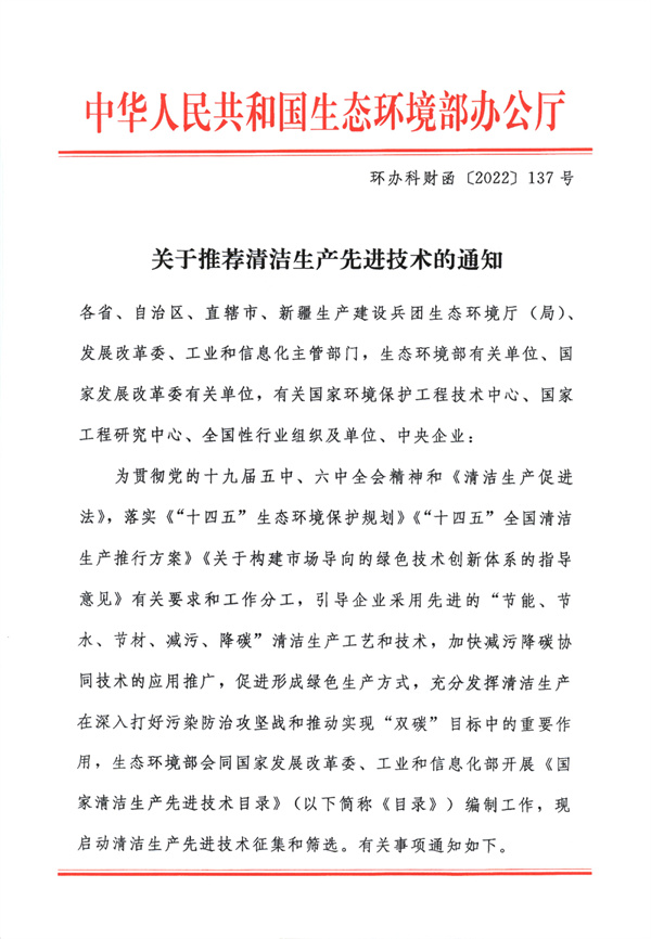 5月31日前報(bào)送!三部委印發(fā)《關(guān)于推薦清潔生產(chǎn)先進(jìn)技術(shù)的通知》2022-04-26 14:43瀏覽數(shù):7次