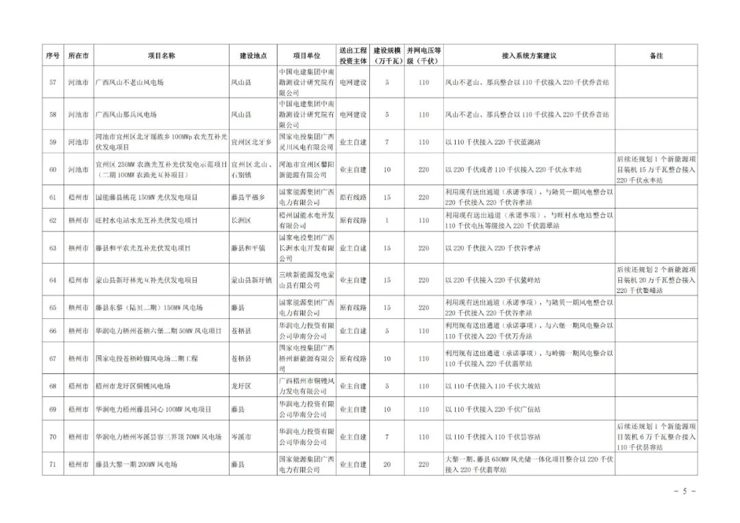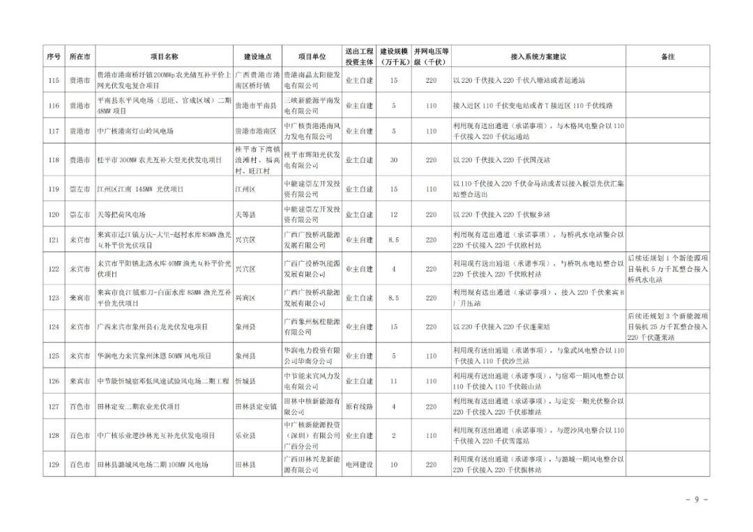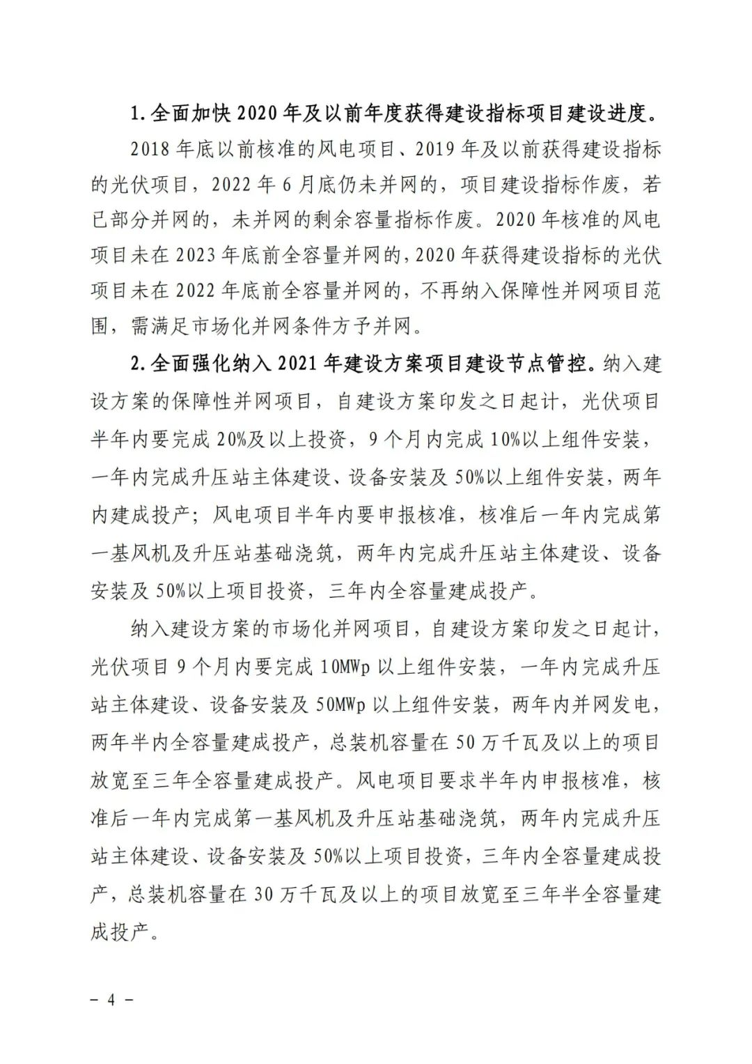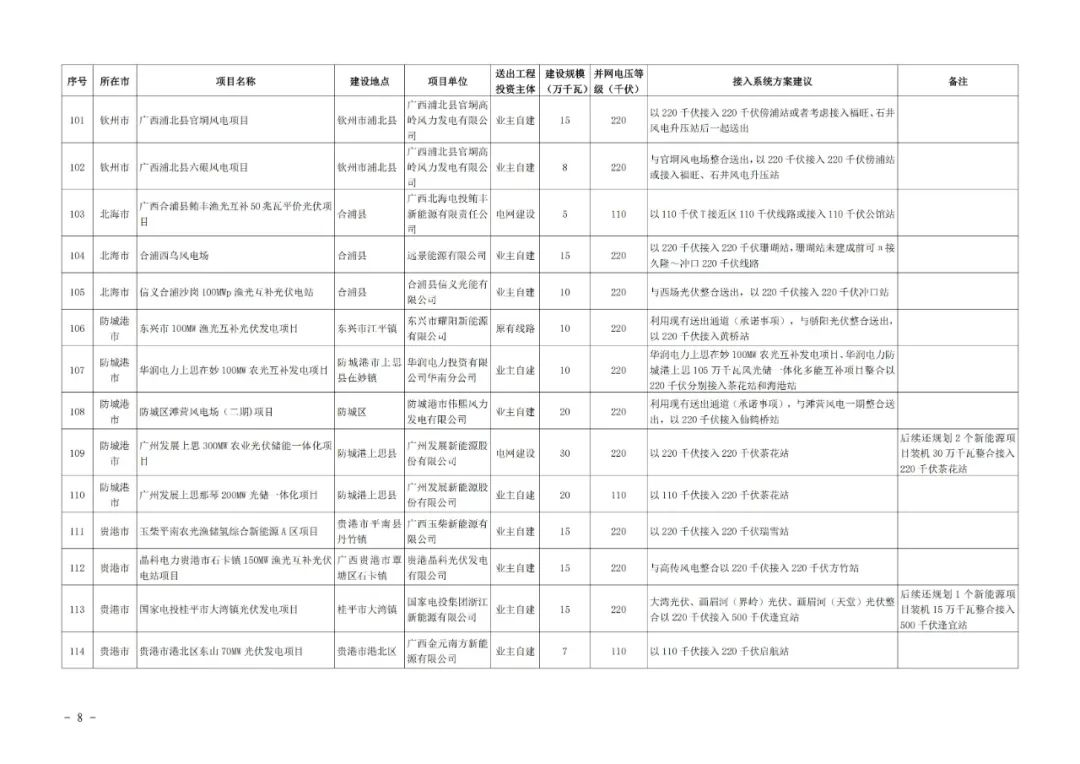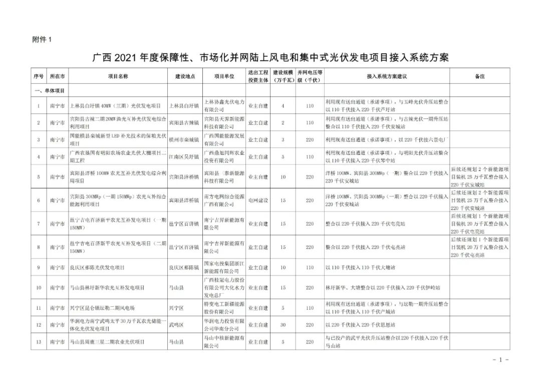 方案要求:全面加快廣西區(qū)既有陸上風電和光伏發(fā)電項目建設(shè),力爭2020年及以前獲得建設(shè)指標的項目全部在2023年底前建成投產(chǎn),納入2021年建設(shè)方案的項目2023年前實現(xiàn)全部開工,“十四五”期間全部建成投產(chǎn)。其中,2022年和2023年分別新增并網(wǎng)新能源規(guī)模不低于400萬千瓦和600萬千瓦。