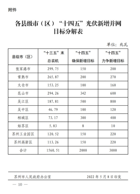 江蘇蘇州:2025年光伏新增并網(wǎng)2GW+ 附各縣級市(區(qū))目標(biāo)分解表2022-05-16 14:06瀏覽數(shù):11次