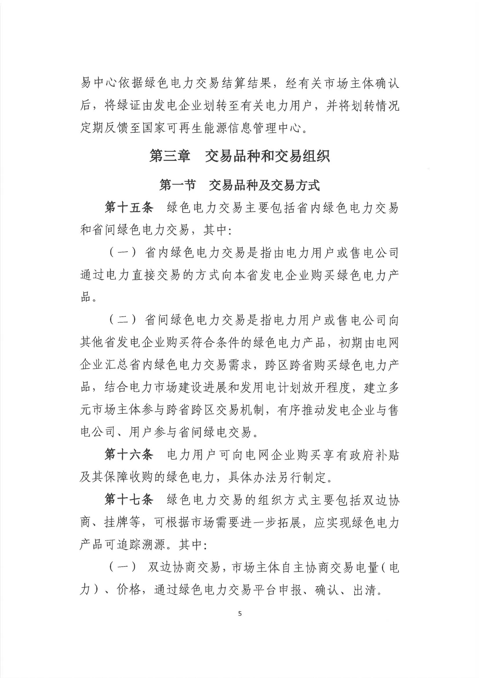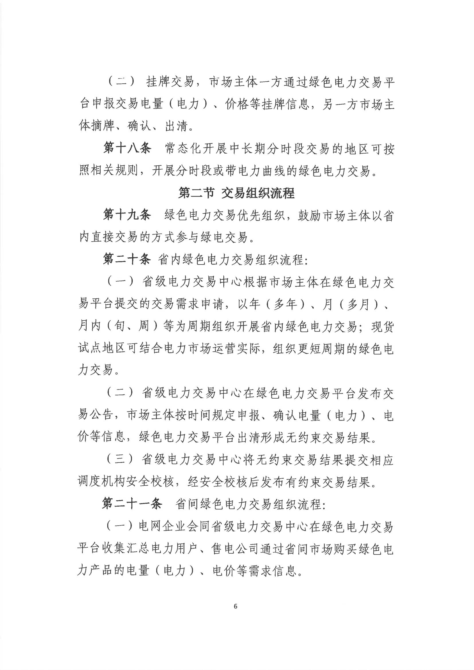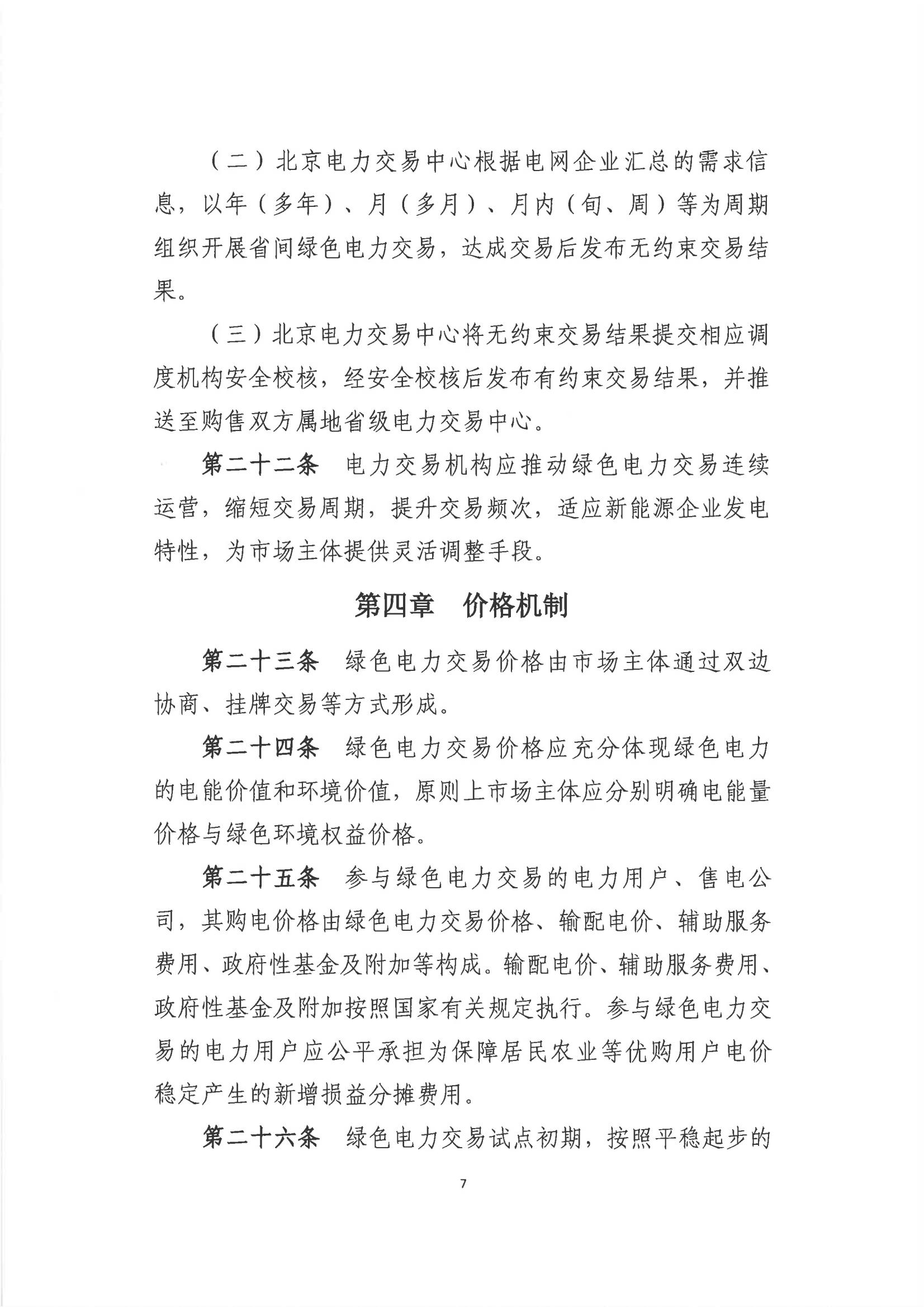 近日,北京電力交易中心發(fā)布《北京電力交易中心綠色電力交易實施細則》,實施細則在試點交易的基礎(chǔ)上,對交易組織、交易價格、交易結(jié)算、綠證劃轉(zhuǎn)等方式及流程進行了細化,將支撐綠色電力交易常態(tài)化開展。 綠色電力產(chǎn)品是指符合國家有關(guān)政策要求的風(fēng)電、光伏等可再生能源發(fā)電企業(yè)上網(wǎng)電量。市場初期,主要指風(fēng)電和光伏發(fā)電企業(yè)上網(wǎng)電量,根據(jù)國家有關(guān)要求可逐步擴大至符合條件的其它電源上網(wǎng)電量。 綠色電力交易是指以綠色電力產(chǎn)品為標(biāo)的物的電力中長期交易,用以滿足發(fā)電企業(yè)、售電公司、電力用戶等市場主體出售、購買綠色電力產(chǎn)品的需求,并為購買綠色電力產(chǎn)品的電力用戶提供綠色電力證書。 綠色電力證書(以下簡稱"綠證")是國家對發(fā)電企業(yè)每兆瓦時非水可再生能源上網(wǎng)電量頒發(fā)的具有唯一代碼標(biāo)識的電子憑證,作為綠色環(huán)境權(quán)益的唯一憑證。 參與市場成員:發(fā)電企業(yè)、電力用戶、售電公司等市場主體,以及電網(wǎng)企業(yè)、電力交易機構(gòu)、電力調(diào)度機構(gòu)、國家可再生能源信息管理中心等。 參與綠色電力交易的發(fā)電企業(yè)初期主要為風(fēng)電和光伏等新能源企業(yè)。綠色電力交易優(yōu)先組織未納入國家可再生能源電價附加補助政策范圍內(nèi)的風(fēng)電和光伏電量(以下簡稱“無補貼新能源”)參與交易;已納入國家可再生能源電價附加補助政策范圍內(nèi)的風(fēng)電和光伏電量(以下簡稱"帶補貼新能源")可自愿參與綠色電力交易,其綠色電力交易電量不計入合理利用小時數(shù),不領(lǐng)取補貼;分布式新能源可通過聚合的方式參與綠色電力交易。 綠色電力交易主要包括省內(nèi)綠色電力交易和省間綠色電力交易。其中: (一)省內(nèi)綠色電力交易是指由電力用戶或售電公司通過電力直接交易的方式向本省發(fā)電企業(yè)購買綠色電力產(chǎn)品。 (二)省間綠色電力交易是指電力用戶或售電公司向其他省發(fā)電企業(yè)購買符合條件的綠色電力產(chǎn)品,初期由電網(wǎng)企業(yè)匯總省內(nèi)綠色電力交易需求,跨區(qū)跨省購買綠色電力產(chǎn)品,結(jié)合電力市場建設(shè)進展和發(fā)用電計劃放開程度,建立多元市場主體參與跨省跨區(qū)交易機制,有序推動發(fā)電企業(yè)與售電公司、用戶參與省間綠電交易。 綠色電力交易的組織方式主要包括雙邊協(xié)商、掛牌等,可根據(jù)市場需要進一步拓展,應(yīng)實現(xiàn)綠色電力產(chǎn)品可追蹤溯源。其中: (一)雙邊協(xié)商交易,市場主體自主協(xié)商交易電量(電力)、價格,通過綠色電力交易平臺申報、確認(rèn)、出清。 (二)掛牌交易,市場主體一方通過綠色電力交易平臺申報交易電量(電力)、價格等掛牌信息,另一方市場主體摘牌、確認(rèn)、出清。 價格方面,綠色電力交易價格由市場主體通過雙邊協(xié)商、掛牌交易等方式形成。綠色電力交易價格應(yīng)充分體現(xiàn)綠色電力的電能價值和環(huán)境價值,原則上市場主體應(yīng)分別明確電能量價格與綠色環(huán)境權(quán)益價格。 參與綠色電力交易的電力用戶、售電公司,其購電價格由綠色電力交易價格、輸配電價、輔助服務(wù)費用、政府性基金及附加等構(gòu)成。輸配電價、輔助服務(wù)費用、政府性基金及附加按照國家有關(guān)規(guī)定執(zhí)行。參與綠色電力交易的電力用戶應(yīng)公平承擔(dān)為保障居民農(nóng)業(yè)等優(yōu)購用戶電價穩(wěn)定產(chǎn)生的新增損益分?jǐn)傎M用。 綠色電力交易試點初期,按照平穩(wěn)起步的原則,可參考綠色電力產(chǎn)品供需情況合理設(shè)置交易價格上、下限,待市場成熟后逐步取消。 詳情如下: