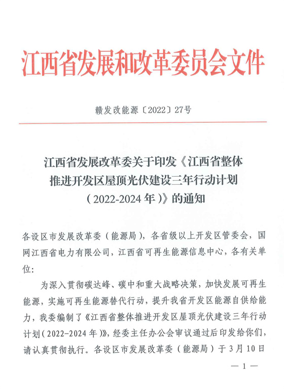 江西省開(kāi)發(fā)區(qū)三年行動(dòng)計(jì)劃屋頂光伏項(xiàng)目競(jìng)爭(zhēng)優(yōu)選通道正式開(kāi)通!2022-05-27 14:14瀏覽數(shù):190次