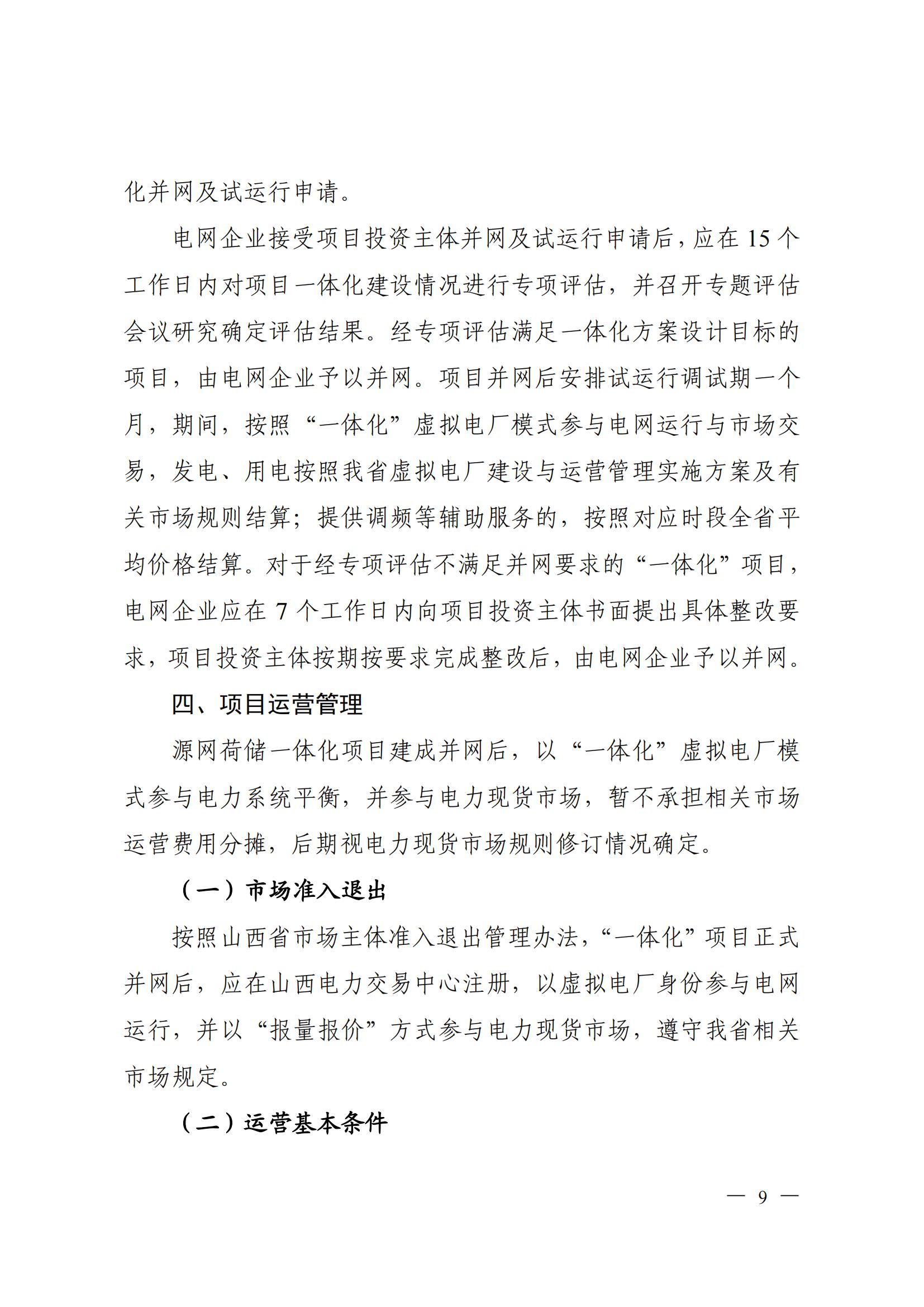 5月30日,山西省能源局印發(fā)《源網(wǎng)荷儲(chǔ)一體化項(xiàng)目管理辦法》,文件明確,源網(wǎng)荷儲(chǔ)一體化項(xiàng)目(以下簡(jiǎn)稱“一體化”項(xiàng)目)通過(guò)“一體化”虛擬電廠等聚合模式參與電網(wǎng)運(yùn)行和市場(chǎng)交易,原則上不占用大電網(wǎng)的調(diào)峰資源,對(duì)占用大電網(wǎng)公共和商業(yè)化調(diào)節(jié)資源的,按相關(guān)市場(chǎng)規(guī)則規(guī)定執(zhí)行。 本辦法重點(diǎn)指導(dǎo)推進(jìn)市(縣)級(jí)、園區(qū)(居民區(qū))級(jí) 源網(wǎng)荷儲(chǔ)一體化項(xiàng)目。 全文如下: