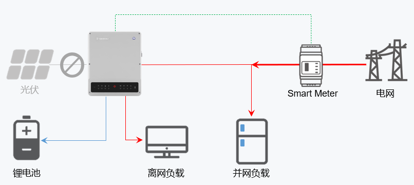 負(fù)載消耗優(yōu)先級(jí): PV--電池--電網(wǎng)