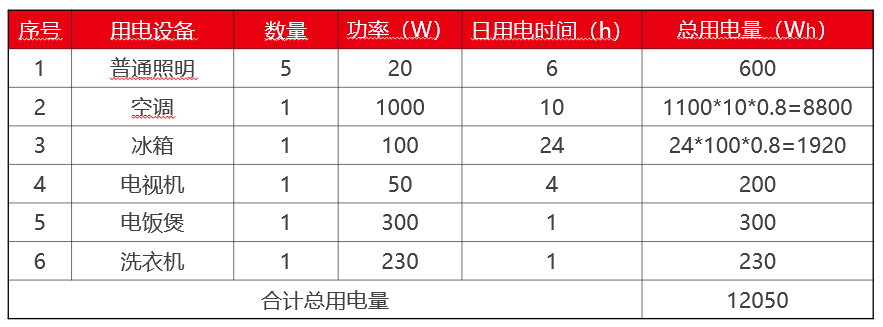 家庭一天常用的總負(fù)載為12.05kWh;若電池的DOD為90%,那么電池的容量應(yīng)為12.05kWh/85%kWh=13.4kWh 。